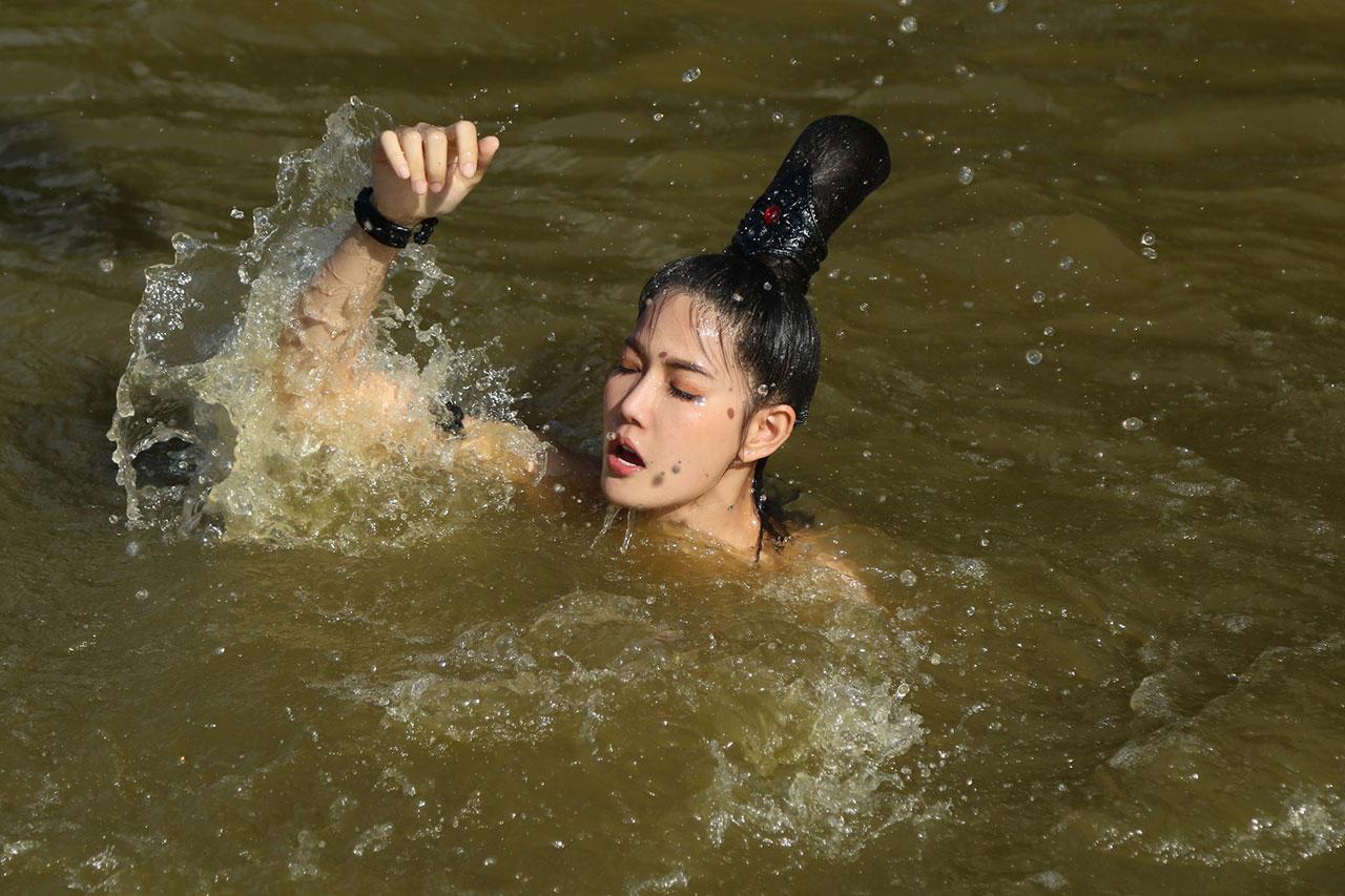 หลังจากที่ ผู้กำกับ ภูมิภัทร สังวาลวรกุล เรียกทุกคนมาซักซ้อมคิวจนเป๊ะ ถ่ายจริงเริ่มที่ จั๊กจั่นล่องเรือผ่านหน้าลานพิธี มองมาที่ฝั่งด้วยความอาลัย น้ำหวานมองไปพร้อมทำพิธีสวด ด้วยสายตาเครียดแค้น พร้อมหยิบคนโทน้ำเทเลือดสดลงในน้ำ แต่จู่ ๆ ก็เกิดสุริยฆาต แผ่นดินไหว กอล์ฟมองจั๊กจั่นบนเรือด้วยความเป็นห่วง จั๊กจั่นก็เรือสั่นโยกซ้ายขวาจนแทบยืนไม่อยู่ กอล์ฟเห็นท่าไม่ดีจึงกระโดดลงช่วย น้ำหวานไม่ยอมกระโดดตามลงไป หยาห้ามไว้ไม่ทัน ด้วยคลื่นที่แรงทำให้น้ำหวานตะเกียกตะกายอยู่ในน้ำ สิ้นเสียงคัต ทำเอาทุกคนหมดแรง เพราะใช้เวลาถ่ายทำซีนนี้ 1 วันเต็มๆ ติดตามชมฉากเปิดเรื่องสุดยิ่งใหญ่นี้ได้ใน วันจันทร์ที่ 25 พฤศจิกายนนี้ เวลา 18.40 น. ทางช่อง 8 กดเลข 27