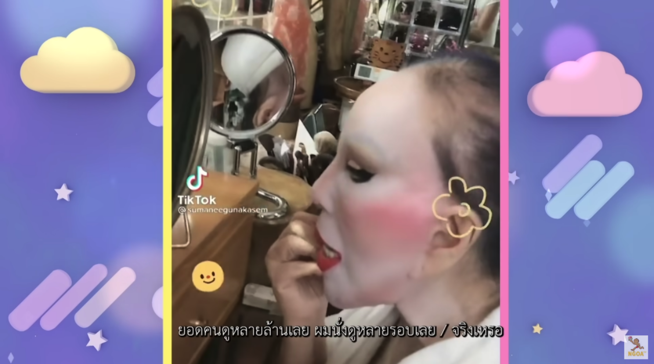 สาเหตุที่ลงคลิปถอดวิกให้เห็นเบื้องหลังการแต่งตัวนั้น คุณสุมณีบอกว่า ความที่มีโควิด 3 ปี ไม่ได้ออกไปไหน เลยกลายเป็นคนขี้เกียจแต่งหน้าไปเลย แต่คุณใหญ่บอกว่าไม่ได้ ซึ่งคุณสุมณีบอกว่า ที่ผ่านมานั้นแต่งหน้าเองมาตลอด ไม่เคยให้ใครแต่งเลย ตนเองเป็นนักวาดรูปถ้าให้คนอื่นแต่งให้ก็จะรู้สึกไม่สบายใจ ไม่มั่นใจ เลยต้องทำเอง
