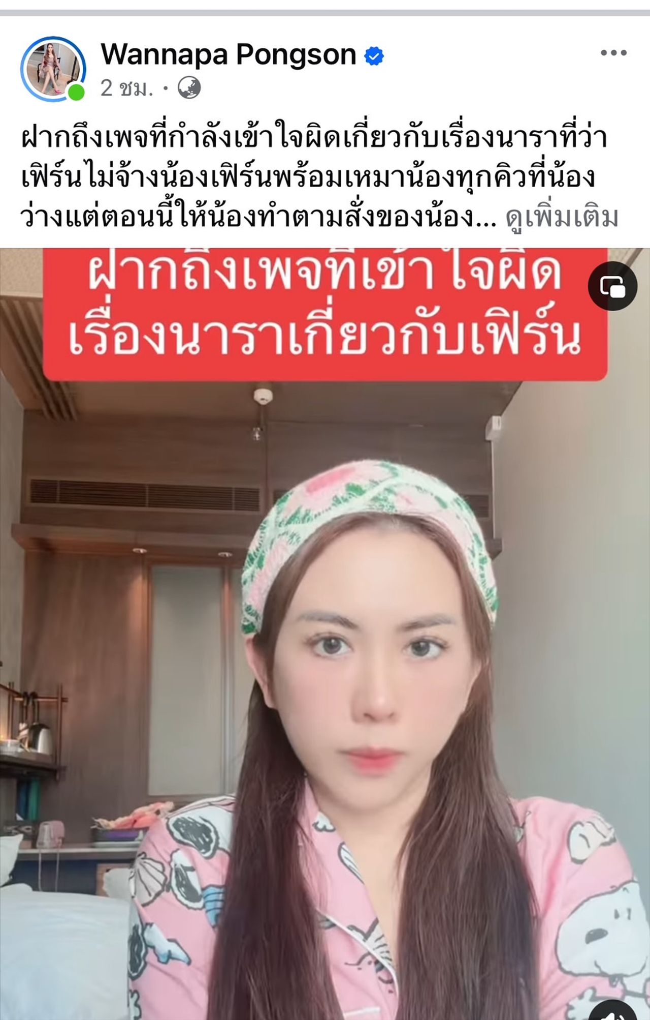 มีเรื่องร้อนให้ได้ออกมาเคลียร์ กันอีกแล้วล่ะค่ะ สำหรับ เฟิร์น วรรณภา ตัวแม่สายเปย์ ที่โดนเพจดัง โพสต์ข้อความแซะว่า "กระแสนารา ใครจะเกาะก็รีบเกาะนะคะตอนนี้แสงเต็มที่ แต่มีอีนึงไม่เกาะเลยทั้งที่ไปเยี่ยม เพราะอะไรอะหรอ ไม่พูดดีกว่า!!!"