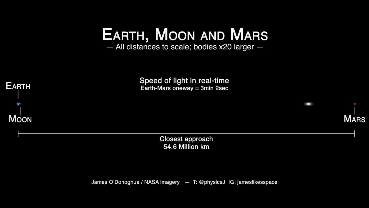 เมื่อผ่านดวงอาทิตย์ไปแล้ว ลองมุ่งหน้าไปด้านนอกของระบบสุริยจักรวาล ขอบนอก เต็มไปด้วยดาวเคราะห์ดวงใหญ่ ใหญ่กว่าโลกหลายเท่า แต่ที่มีขนาดพอๆ กับโลก คุณใช้เวลาบินแค่ 4.2 นาที จะถึงดาวอังคาร ที่อยู่ห่างไกลจากเรามากถึง 78.3 ล้านกิโลเมตร และใช้เวลา 35 นาที จากโลกถึงดาวพฤหัส ที่ห่างจากเรา 628 ล้านกิโลเมตร