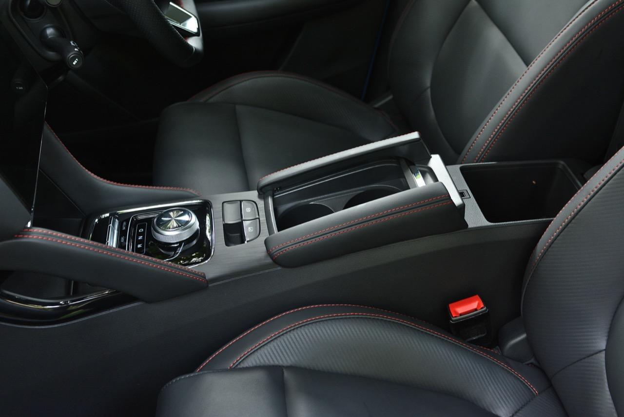 ภายใน คอนโซลหน้าลายคาร์บอนไฟเบอร์ เบาะหนังดำเดินด้ายแดง พร้อมวัสดุบุนุ่มแบบ Soft Touch และ