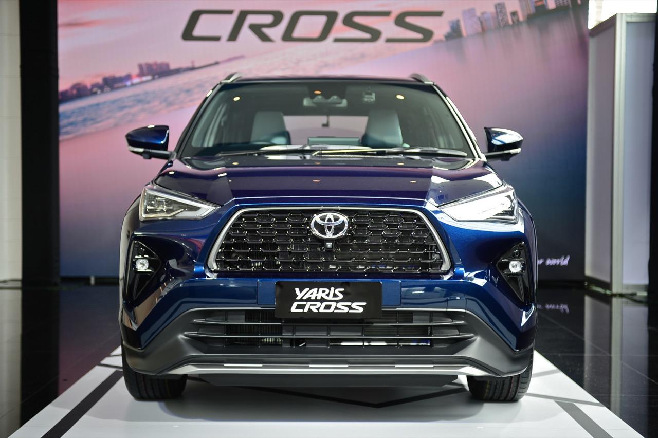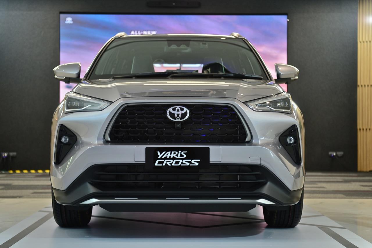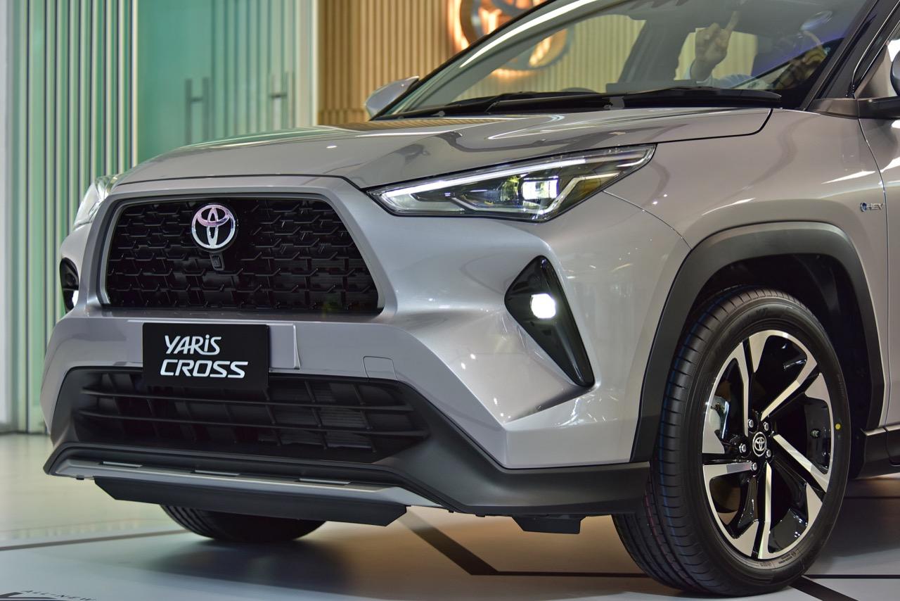 หน้าตาที่เน้นกระจังทรงสี่เหลี่ยมคางหมู ลายภายในกระจังรูปตัวยู ทำจากพลาสติกสีดำเงา ไฟหน้า LED ไฟหรี่กลางวัน LED และไฟตัดหมอกทรงกลมก็ยังใช้หลอด LED อีกเช่นกัน การออกแบบให้กันชนหลอมรวมเป็นชิ้นเดียวกับชุดครอบกระจังหน้าเพื่อลดชิ้นส่วนเพิ่มเติม ช่องรับอากาศใต้กันชนขนาดใหญ่นำกระแสลมเย็นไประบายความร้อนให้กับแผงหม้อน้ำ ฝากระโปรงหน้ายกเหลี่ยมมุมสอดรับกับแนวของไฟหน้า เป็นงานออกแบบตามสมัยนิยมที่พบเห็นกันทั่วไป แก้มข้างมีพลาสติกกันกระแทกสีดำ ล้ออัลลอยขอบ 17 นิ้ว ห่อรัดด้วยยาง Yokohama Bluearth XT AE61 ไซส์ 215/60R17 96H ใน Yaris Cross รุ่น HEV Premium กับ HEV Smart ส่วนรุ่นท็อป HEV Premium Luxury ใส่ล้ออัลลอยขอบ 18 นิ้ว ยาง Yokohama Bluearth XT AE61 ไซส์ 215/55R18 96H
