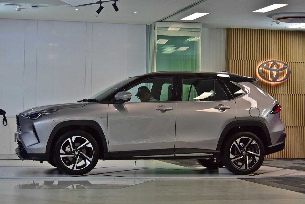 มิติตัวถังของ Toyota Yaris Cross มีขนาดความยาว 4,310 มิลลิเมตร กว้าง 1,770 มิลลิเมตร สูง 1,615 มิลลิเมตร ความยาวฐานล้อ ถือว่ายาวที่สุดในคลาส ที่ตัวเลข 2,620 มิลลิเมตร ความสูงจากพื้นถึงใต้ท้องรถ 210 มิลลิเมตร รัศมีวงเลี้ยว 5.2 เมตร ความจุถังเชื้อเพลิง 36 ลิตร น้ำหนัก 1285 กิโลกรัม ตัวถังด้านข้างมีกรอบกระจกมองข้างสีเดียวกับตัวถังพร้อมไฟเลี้ยว LED ในกรอบกระจก มือจับที่เปิดประตูสีเดียวกับตัวถัง เสาอากาศทรงครีบฉลาม รุ่น HEV Premium Luxury มีหลังคาสีดำพร้อมจุดยึดแรคหลังคาสีเงิน กรอบบานกระจกโครเมียม ฝาถังเชื้อเพลิงทรงกลม รวมถึงพลาสติกตกแต่งชายล่างของบานประตูที่มีทั้งสีดำและสีเงิน