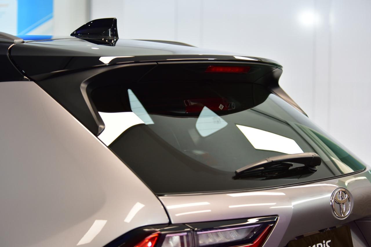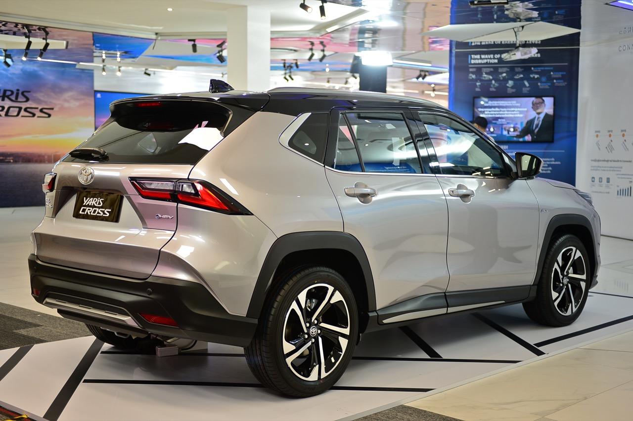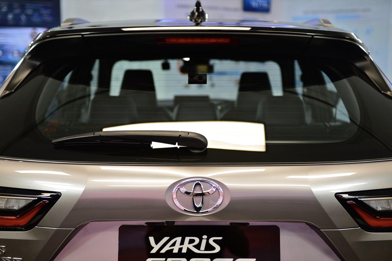 บั้นท้ายทรงเหลี่ยมคล้ายกับ Corolla Cross แต่มีดีไซน์ของไฟท้ายที่แตกต่างออกไป ไฟท้าย LED ออกแบบให้ขอบด้านนอกตวัดลงเพื่อสร้างความต่างจากรถรุ่นพี่ ฝาท้ายของ Yaris Cross รุ่น HEV Premium กับ HEV Smart ใช้การเปิดแบบอัตโนมือ ส่วนฝาท้ายของรุ่นสูงสุด HEV Premium Luxury เปิด-ปิดด้วยระบบไฟฟ้า กันชนหลังพลาสติกสีดำมีแผ่นสะท้อนแสงมัลติรีเฟคเตอร์ ชายล่างของกันชนตกแต่งด้วยพลาสติกสีเงิน กระจกฝาท้ายพร้อมใบปัดน้ำฝน รุ่น Premium Luxury มีสปอยเลอร์ท้ายพร้อมไฟเบรกดวงที่สาม กล้องมองภาพด้านหลัง และเซนเซอร์สองตำแหน่งที่กันชนหลัง