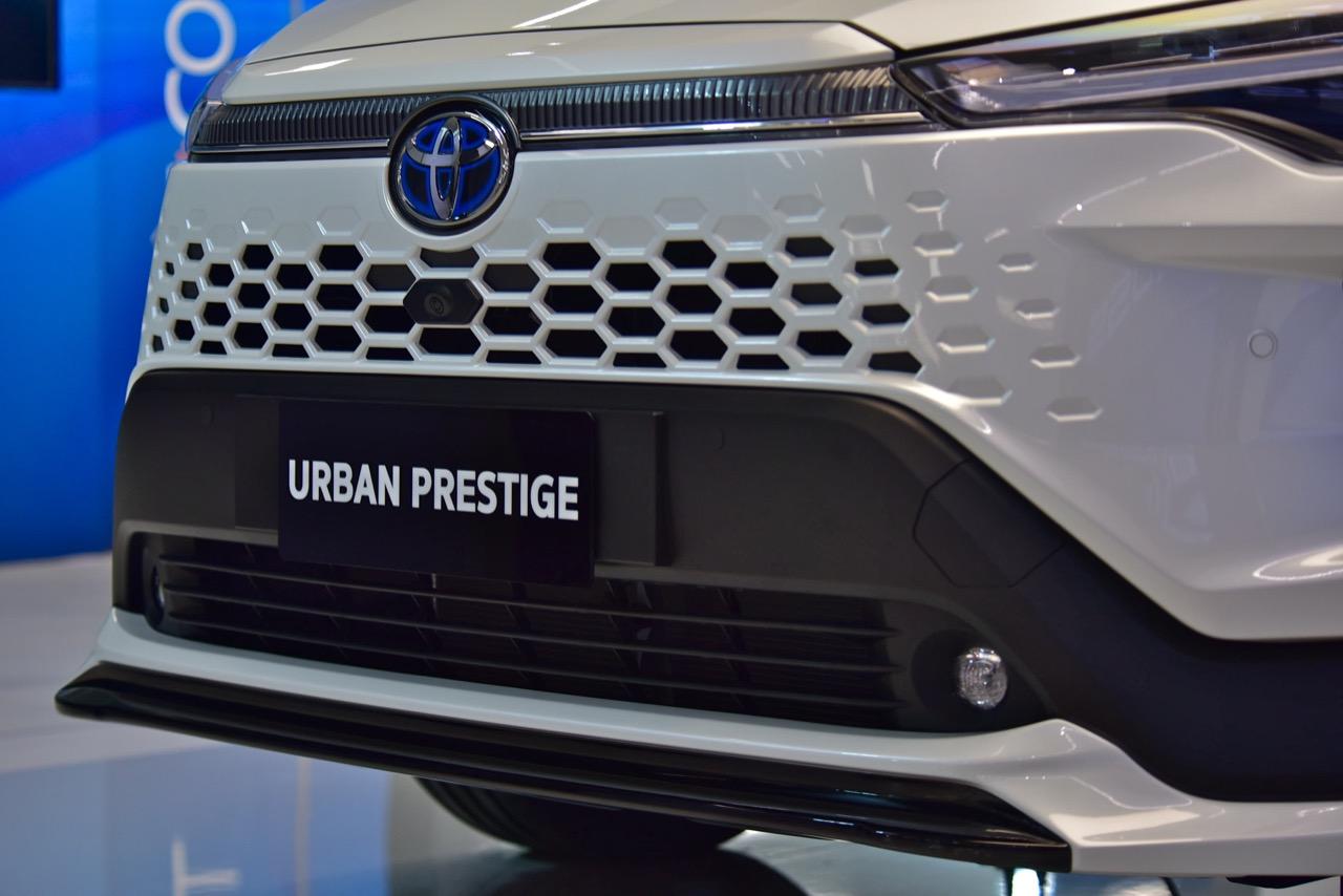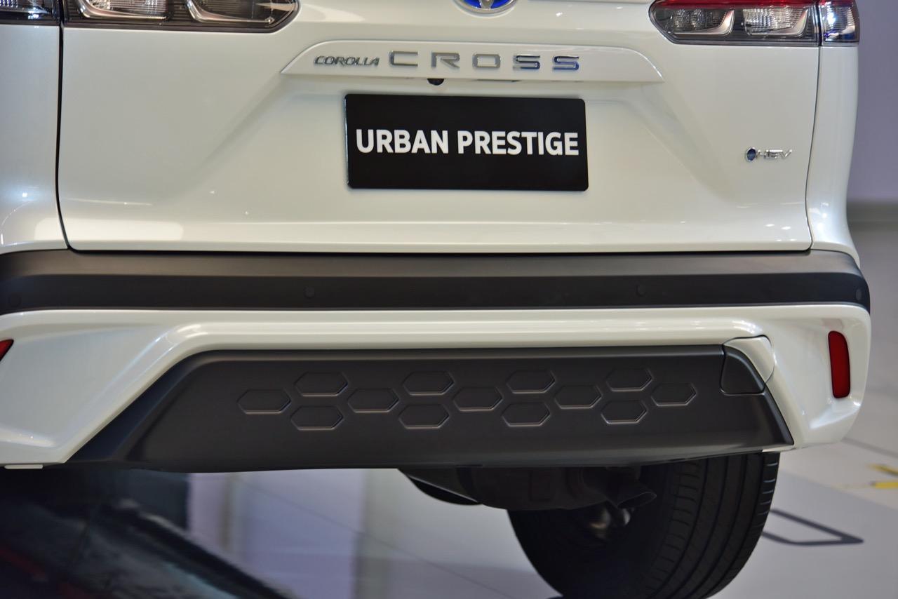 ออกแบบให้รถดูกว้างขึ้น ชิ้นส่วนตกแต่งเล่นมิติแสงเงาได้อย่างลงตัว การใช้รายละเอียดบนตัวถังมาออกแบบชิ้นงานตกแต่งเพื่อความกลมกลืนไปกับดีไซน์ของ Corolla Cross รุ่นปรับโฉม ชุดตกแต่ง Urban Perstige ติดตั้งได้กับ Corolla Cross รุ่น HEV Premium Luxury /รุ่น HEV Premium และรุ่น 1.8 Sport+ (ไม่สามารถติดตั้งในรุ่น GR-Sport) มีให้เลือกทุกสีตัวถัง ราคา 23,900 บาท เช่น สเกิร์ตกันชนหน้า ตัวกันกระแทกบานประตู คิ้วตกแต่งประตูบานฝาท้าย และสเกิร์ตกันชนหลัง.