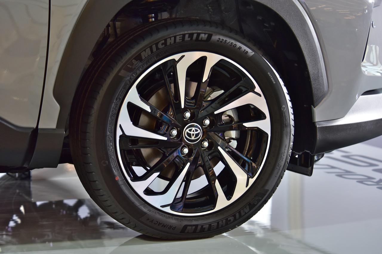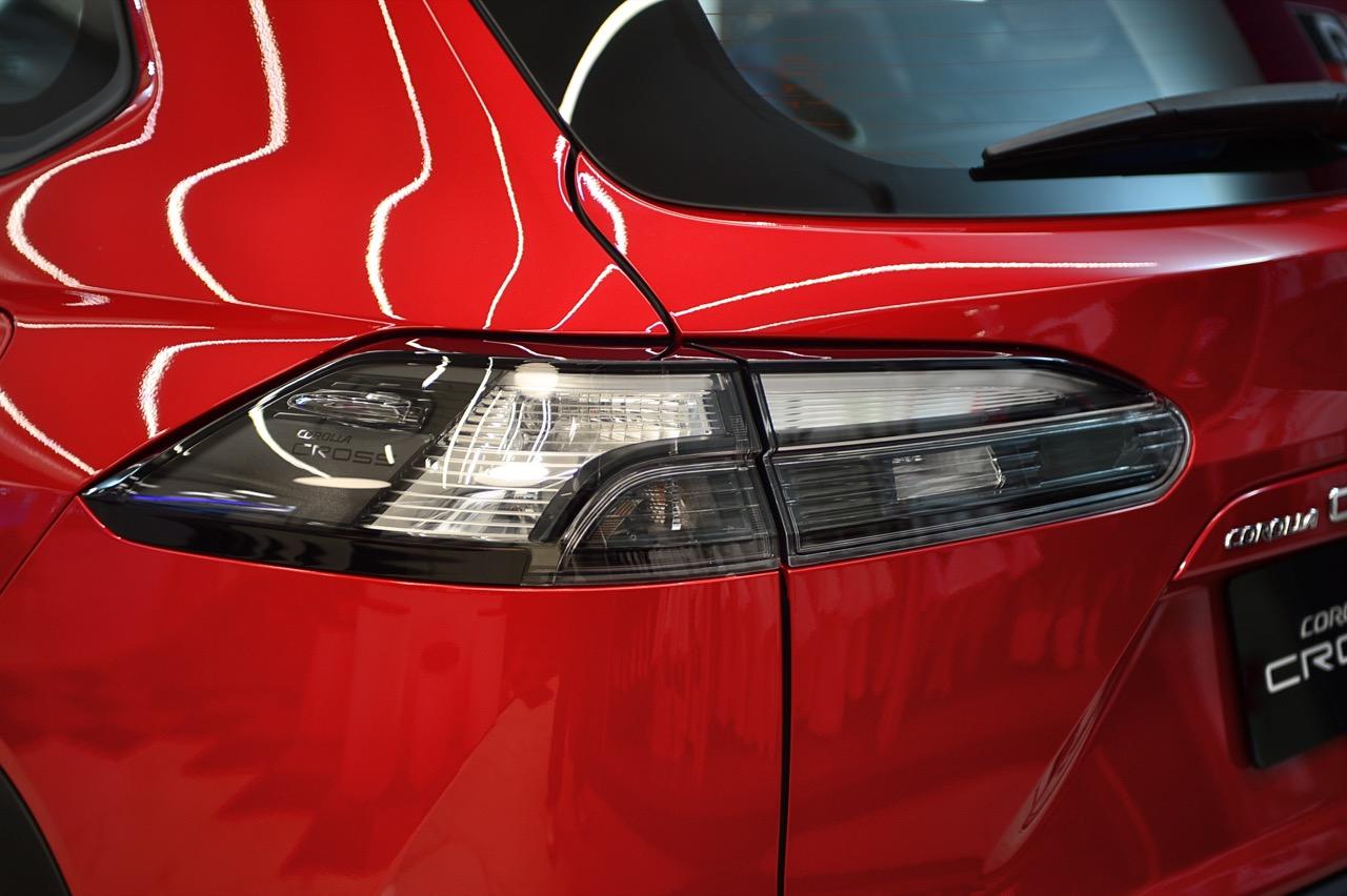 บั้นท้ายเปลี่ยนไฟท้าย กันชนหลัง สัญลักษณ์ HEV ที่ฝาท้าย กันชนหลังยังสื่อให้เห็นถึงความเชื่อมโยงกับกันชนหน้าด้วยรายละเอียดรูปทรงหกเหลี่ยมเล็กๆ 13 ตำแหน่งที่จัดเรียงอย่างลงตัว ไฟท้าย LED แบบใหม่ยังใช้ทรงไฟท้ายเดิมแต่ปรับรายละเอียดภายใน ไฟเบรกดวงที่สามหลอด LED ที่ปัดน้ำฝนกระจกบานหลัง เสาอากาศครีบฉลาม บริเวณมุมด้านล่างของกันชนหลังทั้งสองฝั่ง (ซ้าย-ขวา) ติดตั้งแผ่นพลาสติกสะท้อนแสงมัลติรีเฟคเตอร์ มิติตัวถังของ Toyota Corolla Cross Minorchange 2024 มีขนาดความยาว 4,460 มิลลิเมตร กว้าง 1,825 มิลลิเมตร สูง 1,620 มิลลิเมตร ความยาวฐานล้อ 2,640 มิลลิเมตร ระยะห่างล้อหน้า 1,559 มิลลิเมตร ระยะห่างล้อหลัง 1,571 มิลลิเมตร ความจุถังเชื้อเพลิง (รุ่น HEV Premium Luxury) 36 ลิตร