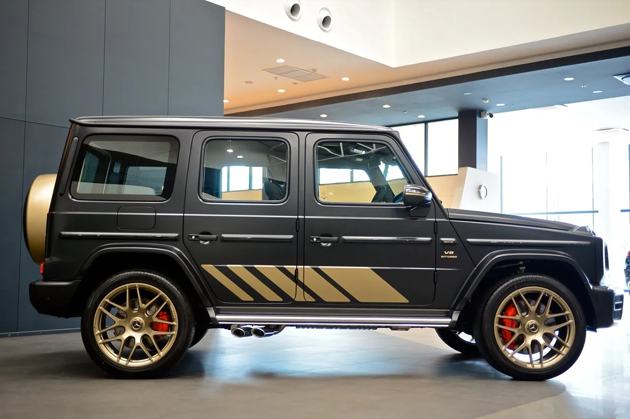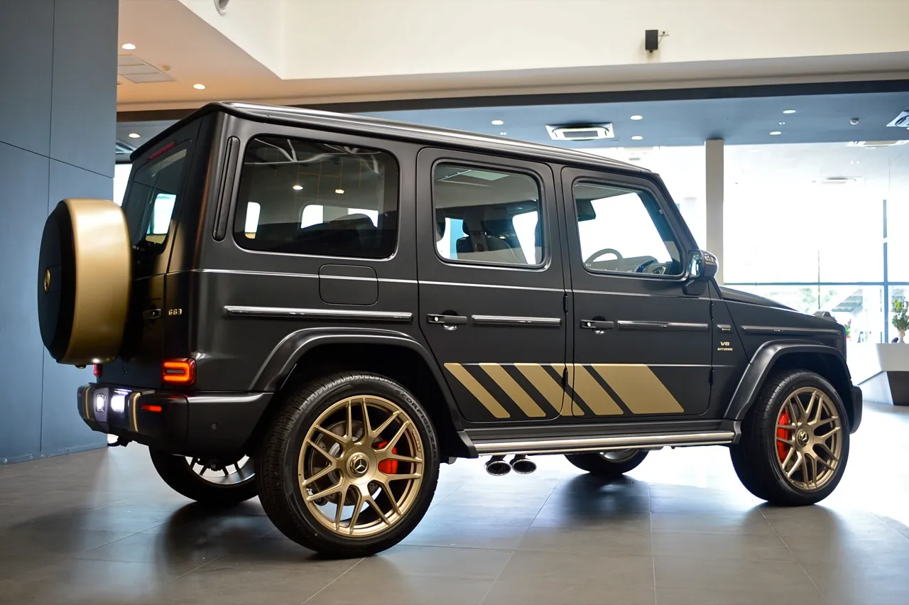 มันดูเหมือนเดิมตั้งแต่เปิดตัวครั้งแรกเมื่อประมาณ 40 ปีที่แล้ว แต่รถที่ดูบึกบึนคันนี้กลับมีสไตล์ที่เปลี่ยนไป โดยเฉพาะเวอร์ชัน AMG G63 สีตัวถัง MANUFAKTUR Night Black Magno ราคา 23,400,000 บาท ช่วยหลีกเลี่ยงมุมมองที่อาจทำให้มันดูคล้ายตู้เย็น Mercedes นำเสนอ G63 ด้วยเฉดสีที่หลากหลาย เปิดโอกาสให้เจ้าของได้แสดงออกถึงความร่ำรวย ด้วยสีพิเศษราคาแพง สีที่ผมชอบคือ สีน้ำตาลด้าน หรือเทาดำอย่างที่เห็นในภาพ