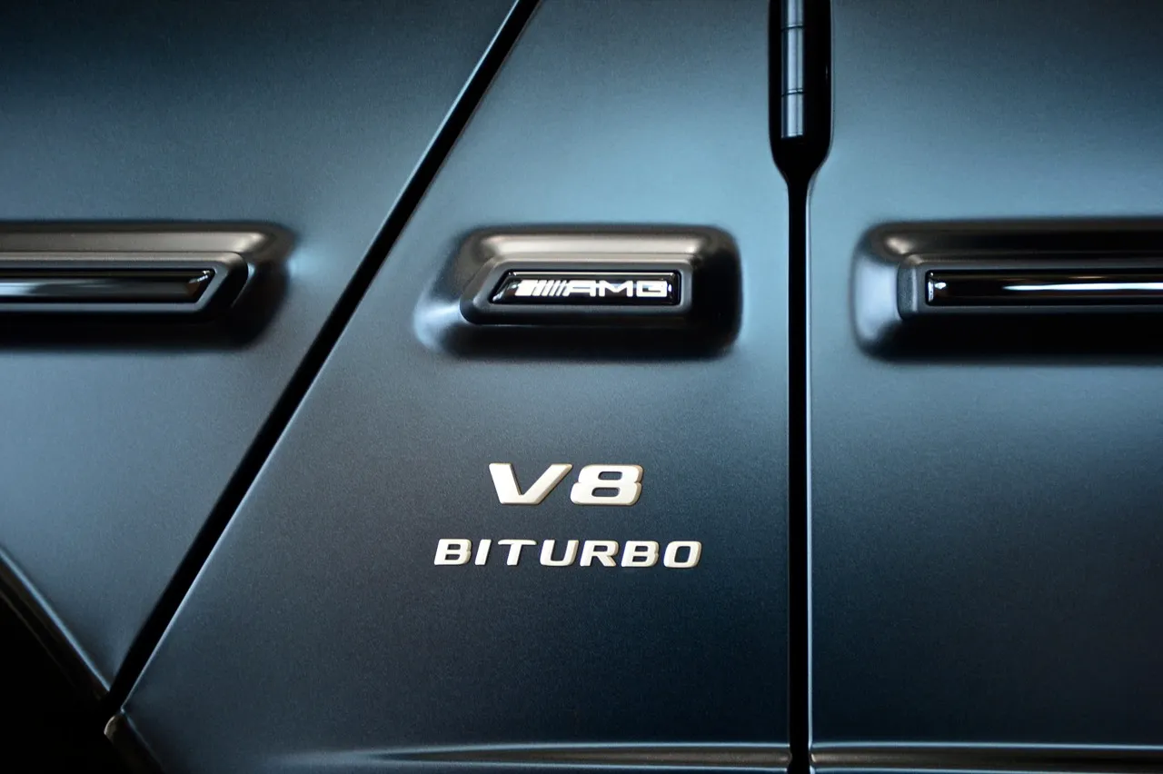 ด้านข้างตัวรถตกแต่งด้วยสัญลักษณ์ "V8 BITURBO"