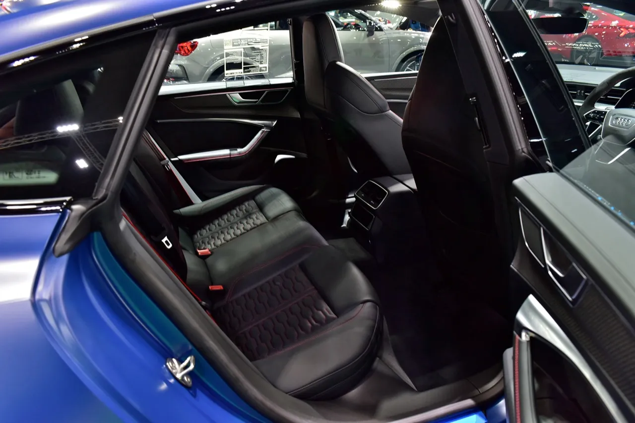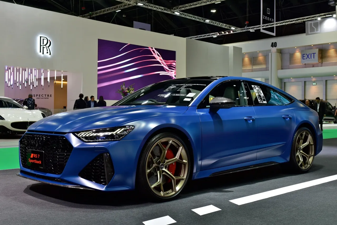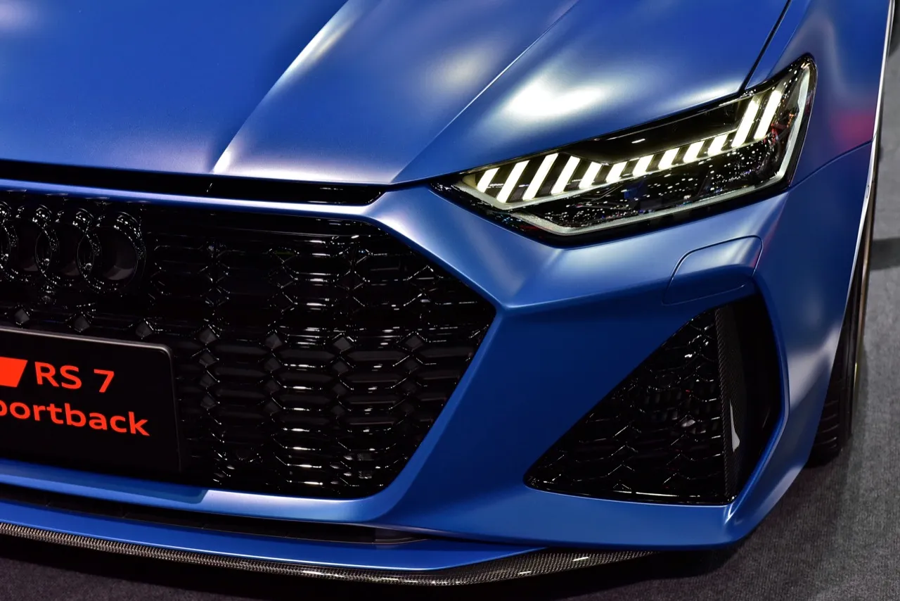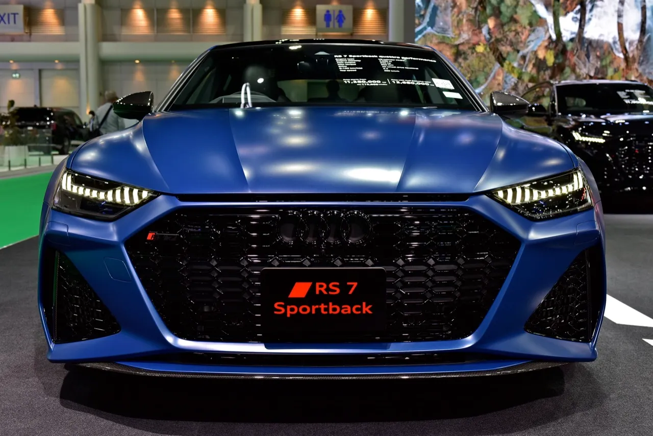 Audi จัดแสดง RS 7 Sportback Quattro ด้วยสีตัวถังพิเศษ Ascari Blue พร้อมอุปกรณ์ตกแต่งคาร์บอนไฟเบอร์รอบคัน สำหรับ RS 7 Sportback Quattro รถแกรนด์ทัวริ่งสุดสวย เป็นคู่แข่งของ Mercedes-AMG E63 และ BMW M850i Gran Coupe และพิเศษกว่าที่เคย เป็นครั้งแรกที่ Audi Sport นำเสนอ Sportcoupé ที่มาพร้อมสีตัวถังสั่งทำพิเศษ ระบบส่งกำลังประสิทธิภาพสูง ช่วงล่างแบบสปอร์ต ล้อลายใหม่ขอบ 22 นิ้ว ชุดขับเคลื่อน Quattro เวอร์ชัน Sport RS ระบบบังคับเลี้ยวสี่ล้อ four-wheel steering และเฟืองขับเคลื่อน Sport Differential เพื่อต่อกรกับคู่แข่งร่วมสัญชาติเยอรมันในกลุ่มลักชัวรี่สปอร์ตซาลูน