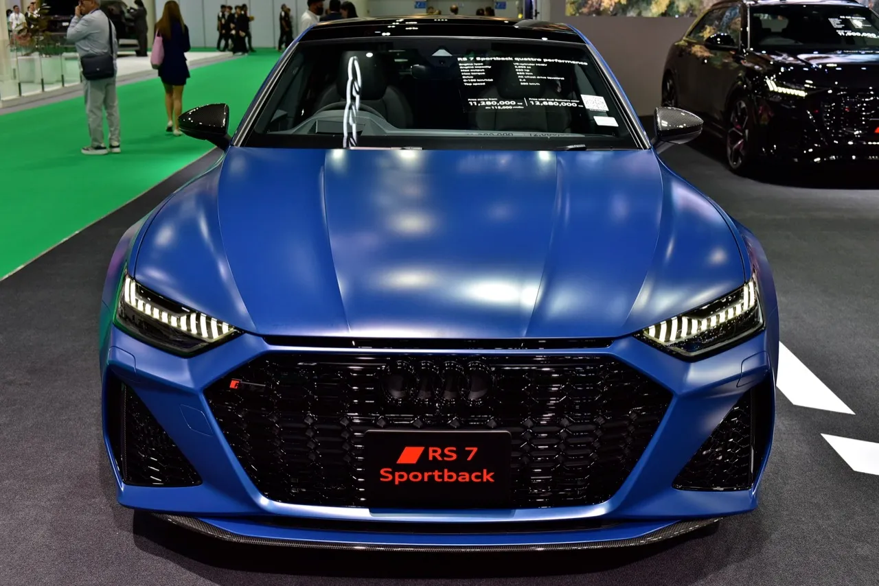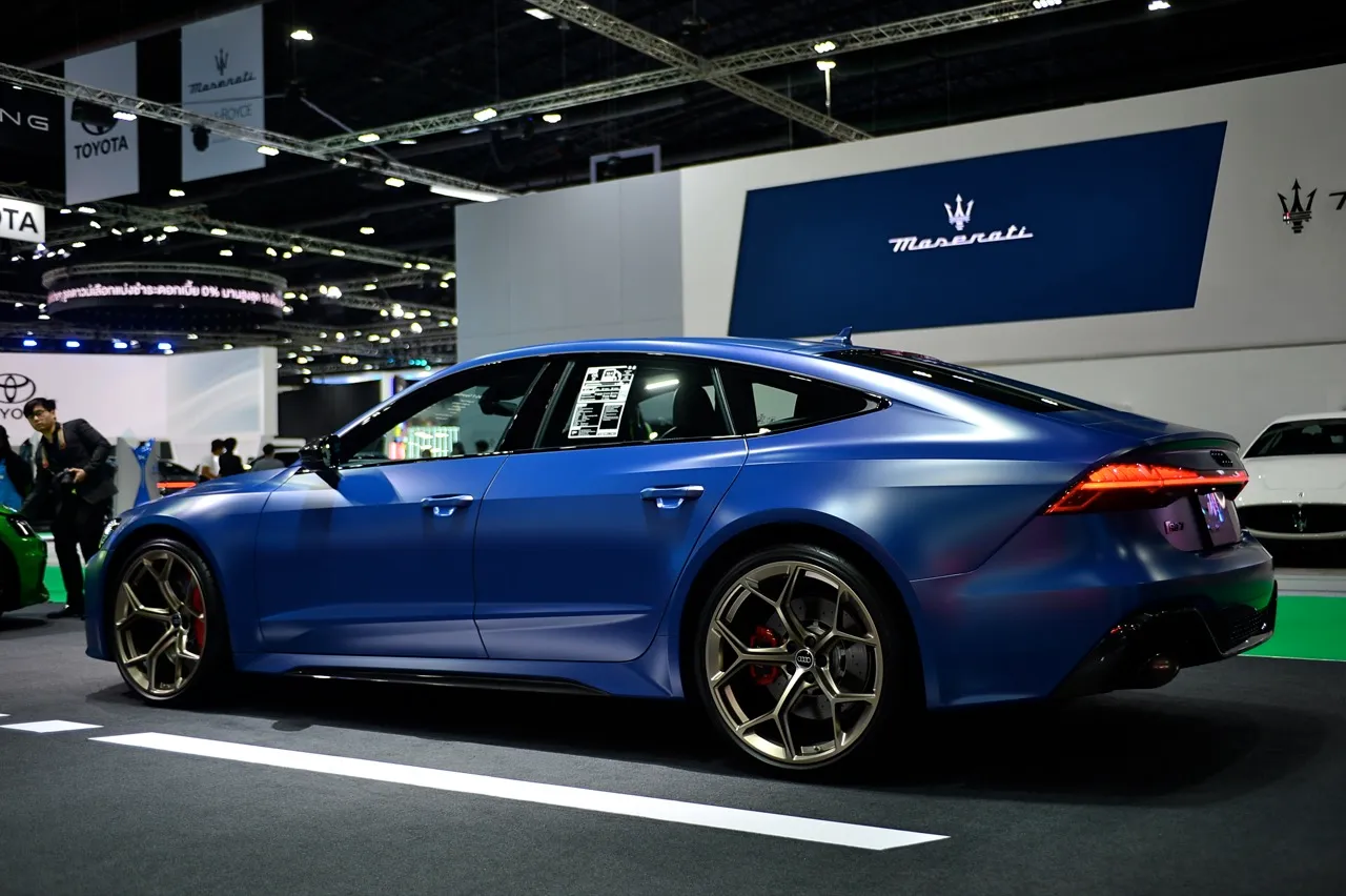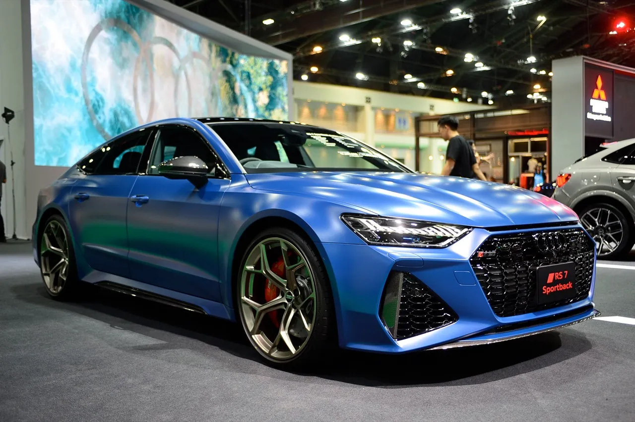 พบกับ Audi RS 7 Sportback Quattro สีตัวถังพิเศษ Ascari Blue พร้อมอุปกรณ์ตกแต่งคาร์บอนไฟเบอร์รอบคัน ได้ที่บูธ Audi ภายในงาน บางกอก อินเตอร์เนชันแนล มอเตอร์โชว์ ครั้งที่ 45 วันนี้ ถึงวันที่ 7 เมษายน พ.ศ. 2567 เวลา 12.00-22.00 น. (วันธรรมดา) และ 11.00-22.00 น. (วันเสาร์-อาทิตย์ และวันหยุดราชการ)