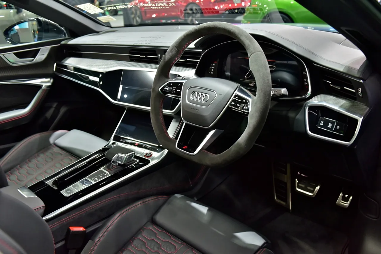 จอแสดงผลเฉพาะ RS ที่มีตัวนับรอบรูปบูมเมอแรงที่เกือบจะนึกถึงมาตรวัดในยุค 70 ที่มีความคิดสร้างสรรค์ เป็นหนึ่งในจอแสดงผล head-up ที่คมชัดที่สุดในตลาดรถหรู พร้อมคำแนะนำการนำทางโดยละเอียด ตรงกลางแผงหน้าปัด มีหน้าจอมอนิเตอร์สองหน้าจอ ทั้งสองจอภาพวางทำมุมไปทางคนขับ การแสดงผลของระบบ 'MMI' เวอร์ชันล่าสุดของ Audi นั้นยอดเยี่ยม เป็นระบบที่ออกแบบให้ใช้งานง่าย หน้าจอด้านล่างสำหรับระบบควบคุมสภาพอากาศ เหมือนกับใน Audi รุ่นใหญ่ในปัจจุบัน (Q7 /Q8/A8) ใช้งานง่ายเมื่อต้องการเปลี่ยนอุณหภูมิขณะเดินทาง