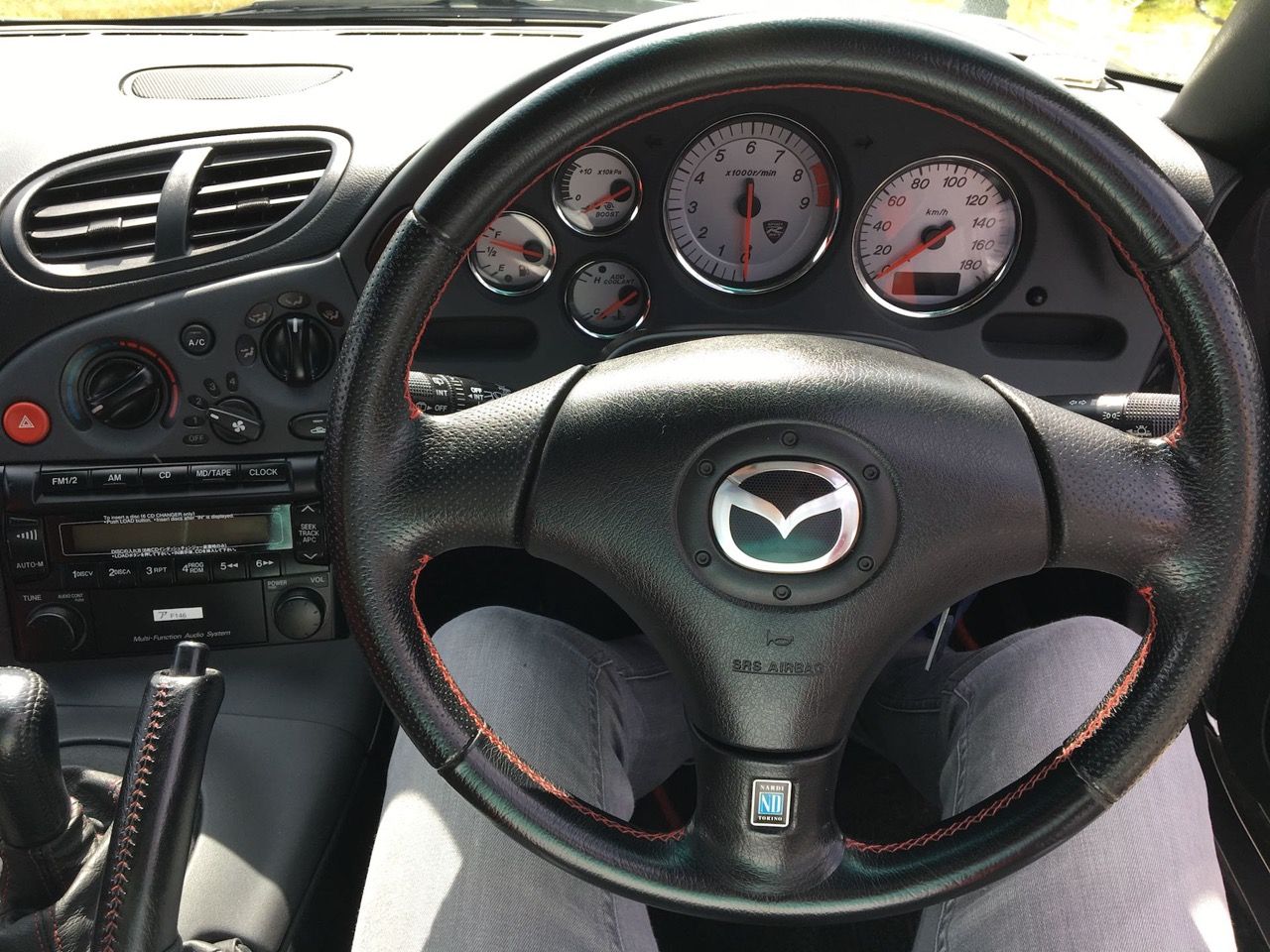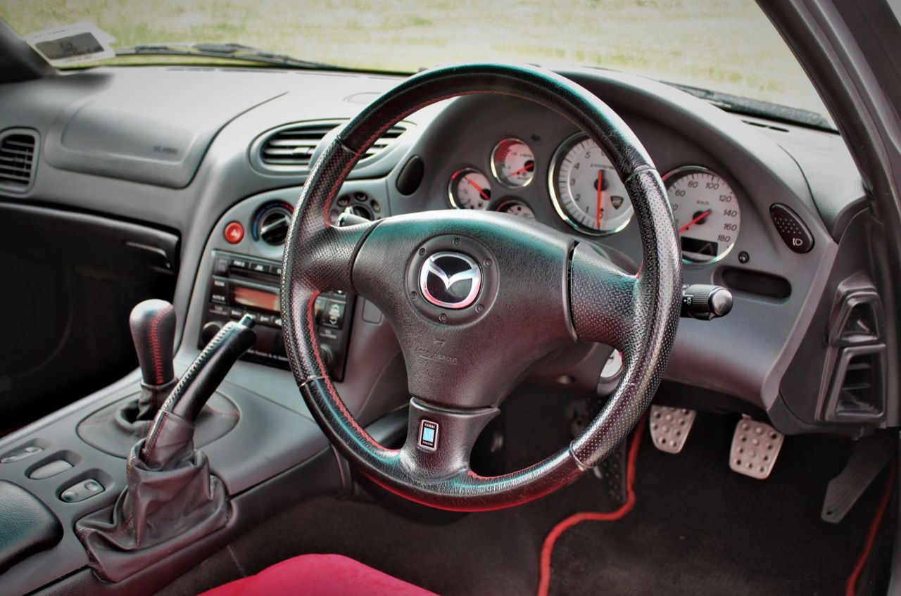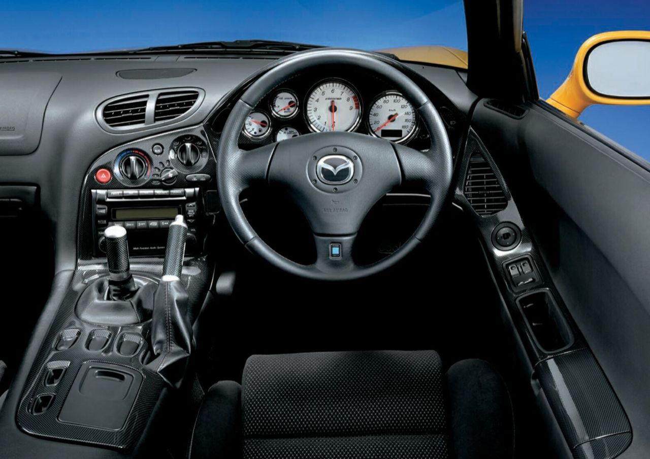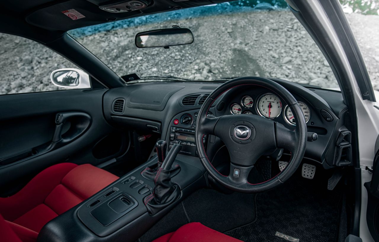 ตำแหน่งการขับนั้นดีสุดในกลุ่มรถสปอร์ตยุค 90 ตำแหน่งของเท้าซ้ายวางตรงไปข้างหน้าบนคลัตช์ สที่อยู่ใกล้กับแป้นเบรก เปิดโอกาสให้พวกที่ชอบใช้เท้าซ้ายเบรกสามารถใช้งานได้อย่างคล่องแคล่ว คันเร่งถูกตั้งค่าไว้โดยคนที่เป็นโรคเส้นประสาทอักเสบ คอนโซลกลางสูงจนเกือบจะถึงแนวสายตา ความร้อนที่เกิดจากเครื่องยนต์ในรถ RX-7 FD ปีสูงๆอาจเล็ดรอดเข้ามาในค็อกพิต เหมาะกับสภาพอากาศที่หนาวเย็นแต่ร้อนตับแลบเมื่อเอามาขับในไทย ตรงหน้าคนขับคือมาตรวัดรอบที่มีรอบสูงสุด 9,000 รอบต่อนาที มากกว่า Ferrari ทุกรุ่นในยุคนั้น ทางด้านขวาคือมาตรวัดความเร็วหน่วยวัดแบบกิโลเมตรต่อชั่วโมง มาตรวัดอัตราการไหลของไอดี การจัดการน้ำมัน อุณหภูมิ เชื้อเพลิง และน้ำหล่อเย็น ที่จัดวางอยู่ในหน้าปัดย่อยสามหน้าปัดทางด้านซ้าย มาตรวัดชัดเจนและแม่นยำทั้งกลางวันและกลางคืน