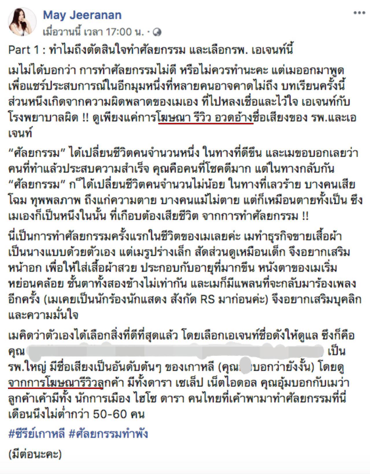 เพราะอยากสวยดูดี ทำนมที่เกาหลี แต่เกือบแลกด้วยชีวิต อย่างกรณีของ “เม จีระนันท์” ที่ออกมาเปิดเผยเรื่องราวเอง ที่ทำให้เห็นว่า เชื่อง่าย เลือกไม่ดี อาจพาตัวเองเข้าไปในจุดเสี่ยง มีสิทธิ์เฉียดตาย