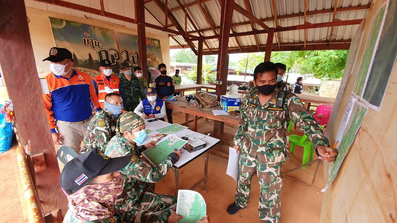 เมื่อเวลา 08.00 น. วันที่ 27 พ.ค.64 ที่ศูนย์อำนวยการค้นหา ภายในศาลาภายในวัดเอราวัณ หรือวัดบ้านกลาง หมู่ 3 ต.ปลาบ่า อ.ภูเรือ จ.เลย นางสาวภูมารินทร์ คงเพียรธรรม นายอำเภอภูเรือ ได้เดินทางมาอำนวยการวางแผนการค้นหา โดยมีนายยศกร สุขสอาด หน.ปภ.จ.เลย จนท.เขตรักษาพันธุ์สัตว์ป่าภูหลวง กู้ภัยสว่างคีรีธรรม จ.เลย กู้ภัยคุณธรรม กู้ภัยนเรศวร จ.หนองบัวลำภู กู้ภัยน้ำโสม กู้ภัยเมธา จ.อุดร กู้ภัยภูกระดึง ชาวบ้าน 150 คน โดยแบ่งออกเป็น 4 ทีม โดยมี จนท.เขตรักษาพันธุ์สัตว์ป่าภูหลวงเป็นหัวหน้าทีม ในการตามหาจุดที่คาดว่านายเต็นสูญหาย ตามร่องน้ำ และขยายพื้นที่ออกไปอีก โดยใช้พาหนะเป็นรถไถ รถโฟร์วีล กว่า 10 คัน มุ่งหน้าวังโศก ส่วนชาวบ้านได้ช่วยกันทำอาหาร น้ำดื่ม แจกจ่ายให้ จนท.และกู้ภัยฯ ติดตัวขึ้นไป