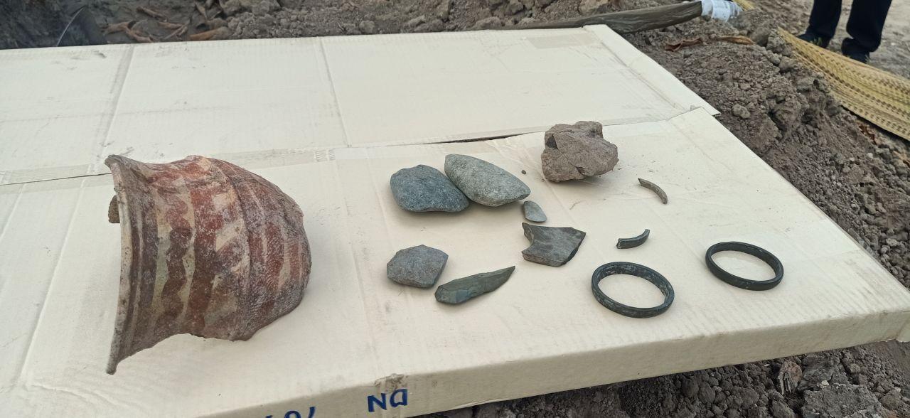 นางสาวกนกวลี สุริยะธรรม ผอ.พิพิธภัณฑสถานแห่งชาติบ้านเชียง เปิดเผยว่า หลังจากเจ้าของพื้นที่ได้พบวัตถุโบราณในที่ดินของตนเอง ได้ประสานไปยังสำนักศิลปากรที่ 8 ขอนแก่น ให้เข้ามาตรวจสอบ สัปดาห์ที่แล้วนักโบราณคดีได้ลงมาตรวจสอบแล้ว 1 ครั้ง โบราณวัตถุที่พบเป็นเศษกระดูกมนุษย์ กระดูกสัตว์ เครื่องมือหิน เครื่องประดับหิน เบื้องต้นประสานเจ้าของที่ดินระงับเรื่องการขุดดินในพื้นที่เพิ่มเติม หากจะใช้ประโยชน์พื้นที่ต้องกลบทั้งหมด และต้องไม่ขุดลงไปเพิ่มเติมอีก แนวทางในอนาคตยังมีเนินดินด้านหลังที่ยังไม่ได้ขุดทำลาย ทางจังหวัด อำเภอ หรือท้องถิ่น ต้องทำเรื่องขอการขุดศึกษาพื้นที่ต่อไป