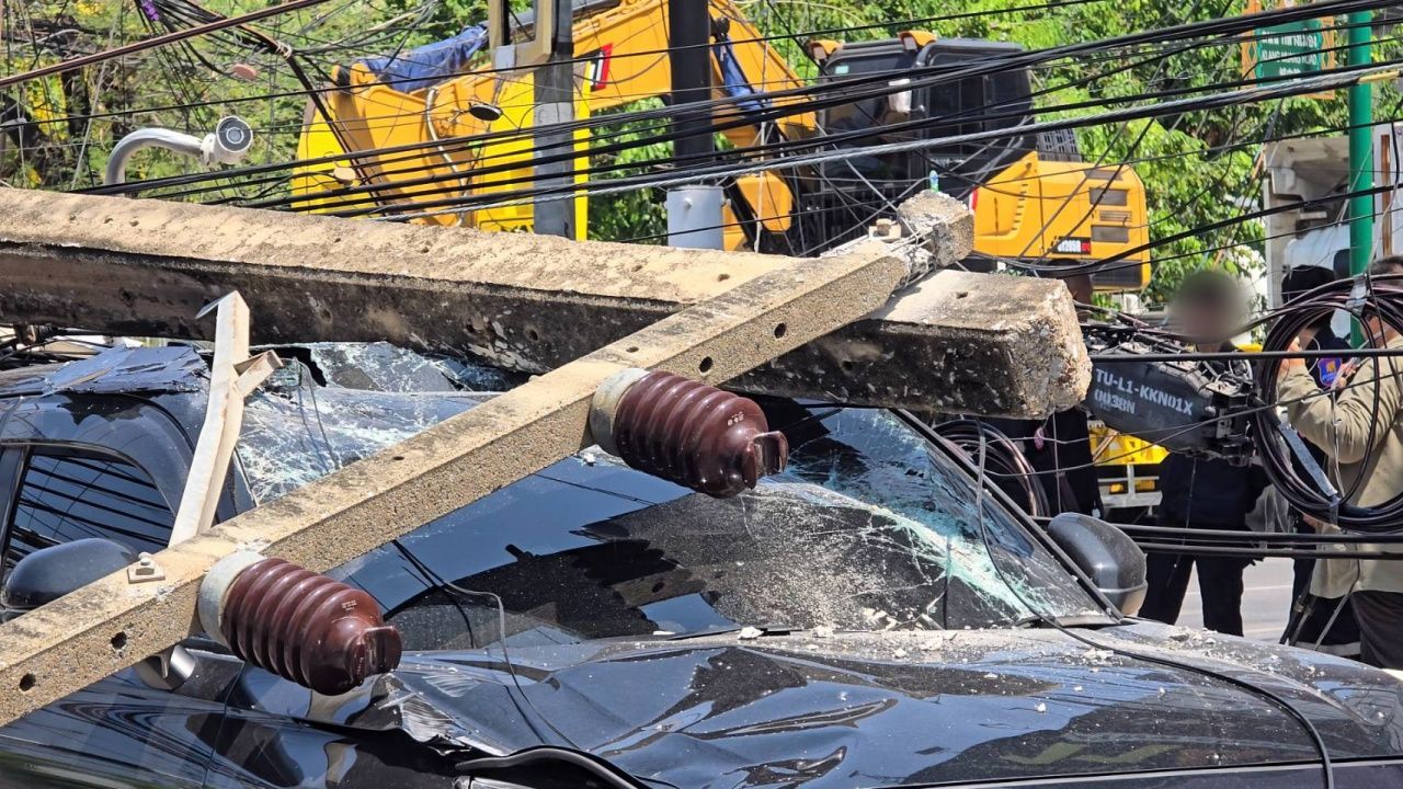 เมื่อไปถึงพบว่า ทั้งสายไฟฟ้าและสายสัญญาณห้อยลงมาขวางถนน และมีเสาไฟฟ้าแรงสูงที่ตั้งอยู่ริมถนน ซึ่งที่หัวเสาเต็มไปด้วยสายสัญญาณของบริษัทต่างๆ ติดอยู่เต็มไปหมด โดยเสาไฟฟ้าหักครึ่ง ทับรถเก๋ง ยี่ห้อ ฮอนด้า เอช อาร์ วี สีดำ สภาพรถ กระจกหน้าแตก หลังคารถยุบ มีเสาไฟฟ้าทับอยู่ที่หลังคารถ ที่มีนายเทวิน วินิจฉัย อายุ 27 ปี เป็นคนขับ โดยมีเพื่อนนั่งมาในรถด้วย และทั้งสองคนก็สามารถออกมาจากรถได้อย่างปลอดภัย