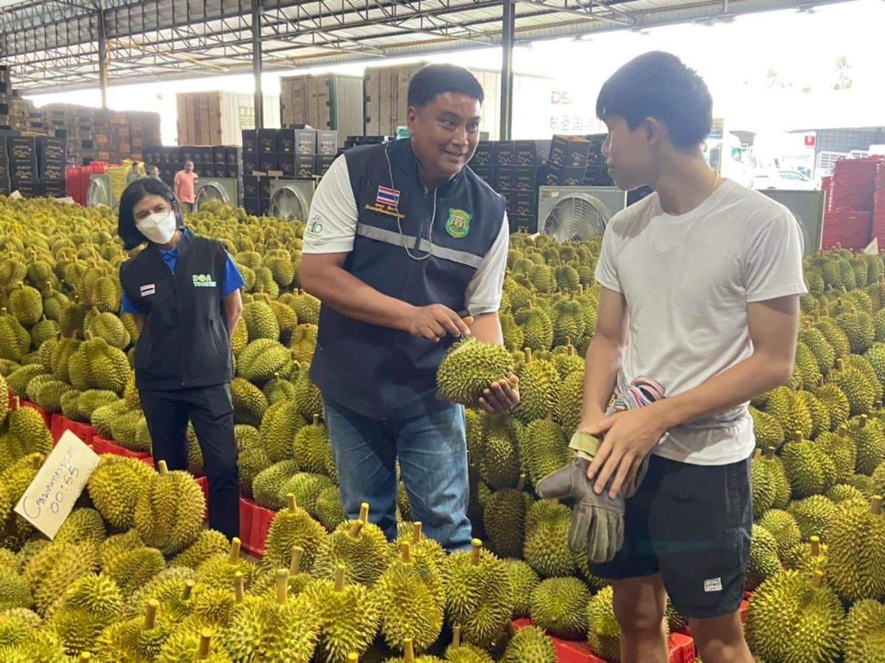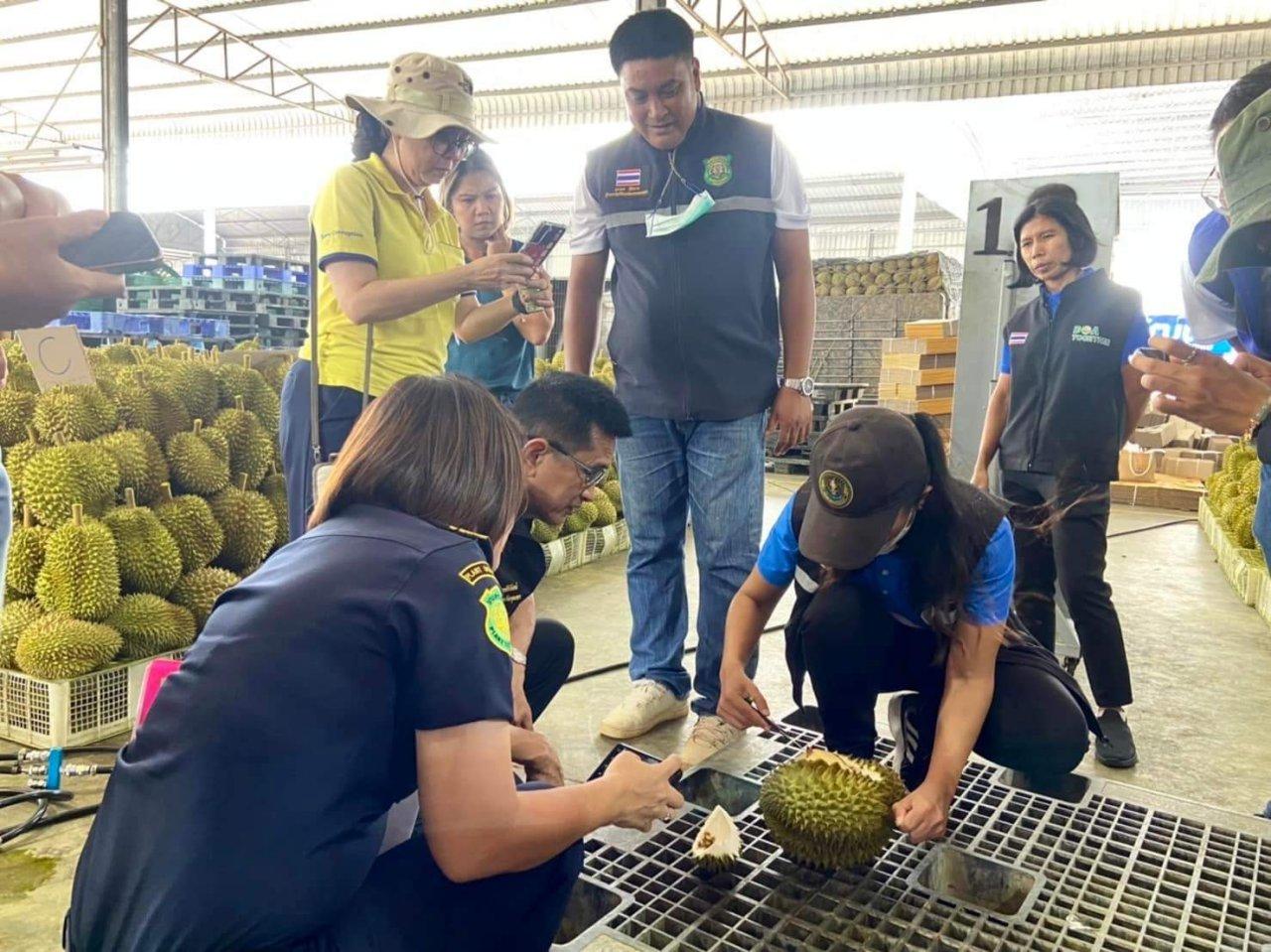 โดยชุดปฏิบัติการได้สุ่มตรวจคุณภาพทุเรียน จากสถานประกอบการ 5 แห่ง ในอำเภอทุ่งตะโกและอำเภอหลังสวน ซึ่งทุเรียนที่ซื้อขายในช่วงนี้ ส่วนใหญ่เป็นทุเรียนจากต่างจังหวัด ตั้งแต่สุราษฎร์ธานีลงไป โดยเฉพาะมาจากจังหวัดชายแดนภาคใต้กว่า 80% และสถานประกอบการส่วนใหญ่ยังคงมีการคัดทุเรียนคุณภาพเพื่อการส่งออกตามมาตรฐาน แต่จากการตรวจสอบอย่างละเอียด พบแผงทุเรียนบางแห่ง ยังคงตรวจพบทุเรียนด้อยคุณภาพ ทุเรียนหนอนเจาะ และทุเรียนอ่อนอยู่บ้าง (เปอร์เซ็นต์น้ำหนักแห้งไม่ถึง 32%) จึงเข้าดำเนินการตามมาตรการพ่นกากบาทสีแดงเป็นสัญลักษณ์ทุเรียนอ่อน เพื่อป้องกันการนำไปขายปะปนกับทุเรียนคุณภาพต่อไป