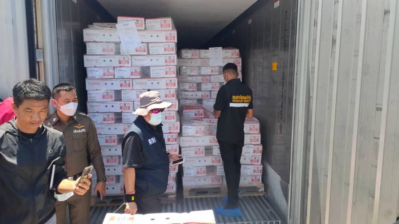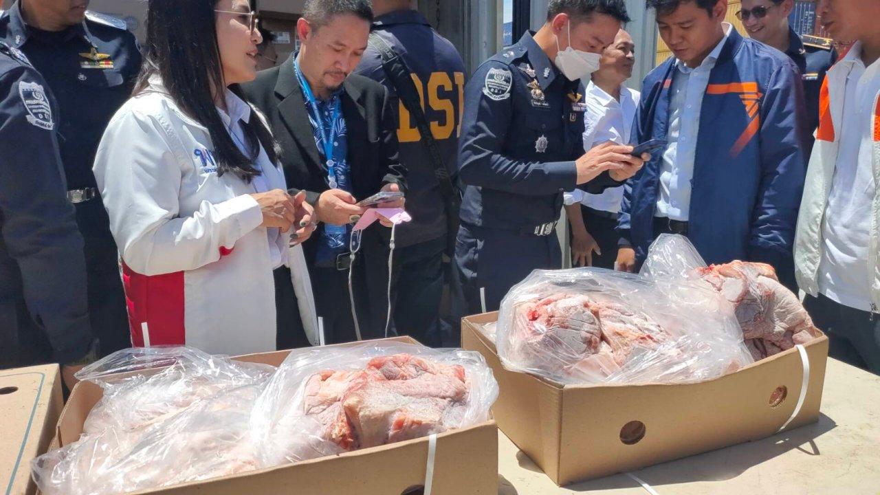นายฐิติพงศ์ กล่าวถึงตู้สินค้าตกค้างประเภทสุกรแช่แข็งที่ตกเป็นของแผ่นดิน จำนวน 161 ตู้ว่า ตู้สินค้าสุกรแช่แข็งเหล่านั้น ได้มีการเปิดสำรวจอย่างต่อเนื่องในรูปเเบบของคณะทำงานร่วมระหว่างเจ้าหน้าที่จากกรมศุลกากร กรมสอบสวนคดีพิเศษเเละกรมปศุสัตว์ จนสำรวจเเล้วเสร็จทั้ง 161 ตู้ เมื่อวันที่ 12 กรกฎาคม 2566 และปัจจุบัน สำนักงานศุลกากรท่าเรือแหลมฉบังได้เตรียมการส่งมอบสินค้าประเภทสุกรดังกล่าวให้กรมปศุสัตว์เพื่อนำไปดำเนินการทำลาย ขณะนี้ อยู่ระหว่างการสอบถามกรมสอบสวนคดีพิเศษว่า การทำลายสินค้าดังกล่าวซึ่งเป็นของกลางในคดีอาญา จะส่งผลให้ขาดพยานหลักฐานหรือเสียหายรูปคดีของคณะพนักงานสอบสวนคดีพิเศษหรือไม่ ประการใด หากได้รับคำตอบเรียบร้อยแล้ว จะรีบดำเนินการในลำดับต่อไปทันที