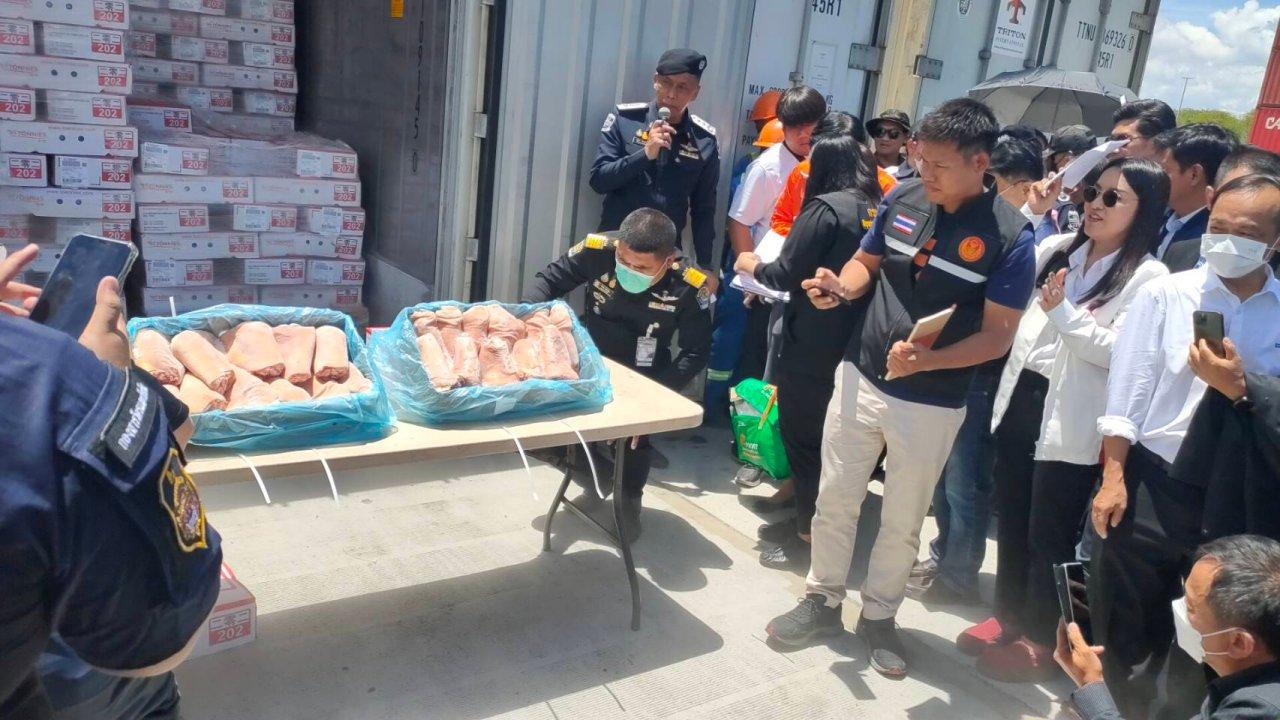 สำนักงานศุลกากรท่าเรือแหลมฉบัง ชี้แจง การดำเนินการกับของตกค้างประเภทสุกรแช่แข็งอยู่ในกระบวนการ ยันตู้สินค้าตกค้างไม่ใช่สุกรแช่แข็ง 1,000 ตู้ ตามที่เป็นข่าวแน่นอน โดยเป็นตู้สินค้าคงค้างอื่นๆ ที่รอสายเดินเรือรับผิดชอบจัดการ