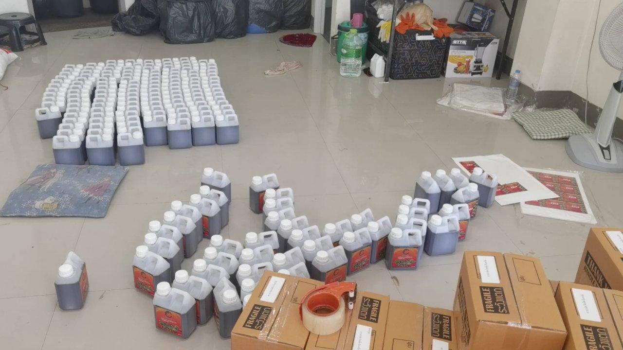 เมื่อเดินทางมาถึง พบที่บริเวณชั้น 1 มีพนักงานกำลังบรรจุสิ่งของเพื่อนำส่งสินค้าเป็นจำนวนมาก ส่วนชั้นที่ 2 ใช้ทำเป็นห้องสำหรับ รับออเดอร์จากลูกค้าที่สั่งทางเพจ เพจเฟซบุ๊ก และติ๊กต่อก มีพนักงาน 5 คน โดยมี น.ส.ณัทนา มะโนทัย อายุ 34 ปี แสดงตัวเป็นผู้ดูแลสถานที่ดังกล่าว/นำตรวจค้น ซึ่งจาการตรวจค้น พบสารเคมีหลายตัวที่เป็นอันตราย เช่น โซดาไฟ สารเคมีแอซีติก แอซิด เกลเซียม 99.85% ซึ่งเป็นของไวไฟ ถ้าถูกผิวหนังจะทำให้ผิวหนังไหม้ และทำลายดวงตา