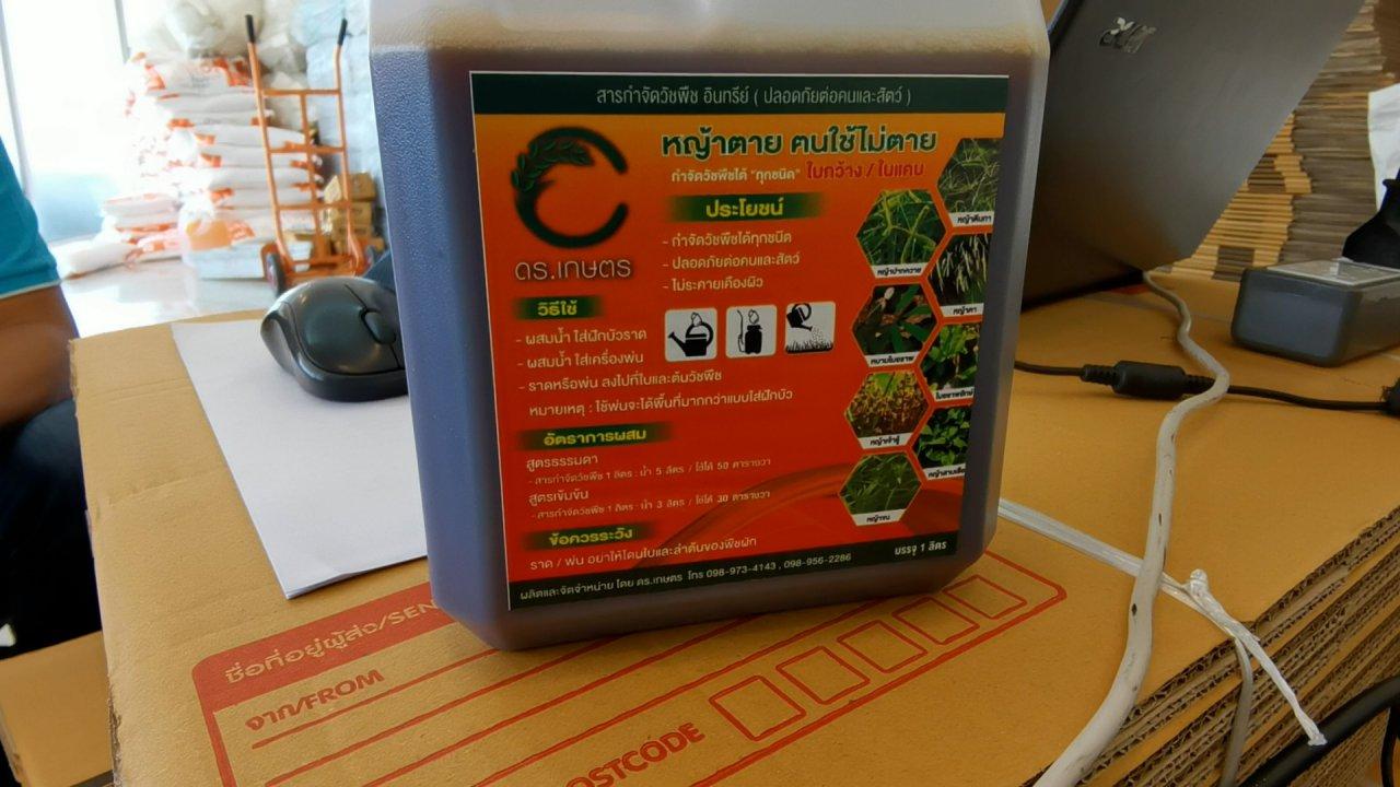 โดยผลิตภัณฑ์สินค้าที่พบ ชื่อสารกำจัดวัชพืชอินทรีย์ ชื่อการค้า ดร.เกษตร ฉลากสินค้าระบุ กำจัดวัชพืชได้ทุกชนิด ใบกว้าง ใบแคบ บรรจุในแกลลอนขนาด 1 ลิตร รวมจำนวน 1,609 แกลลอน และวัตถุดิบพร้อมอุปกรณ์การผลิต จำนวน 10 รายการ