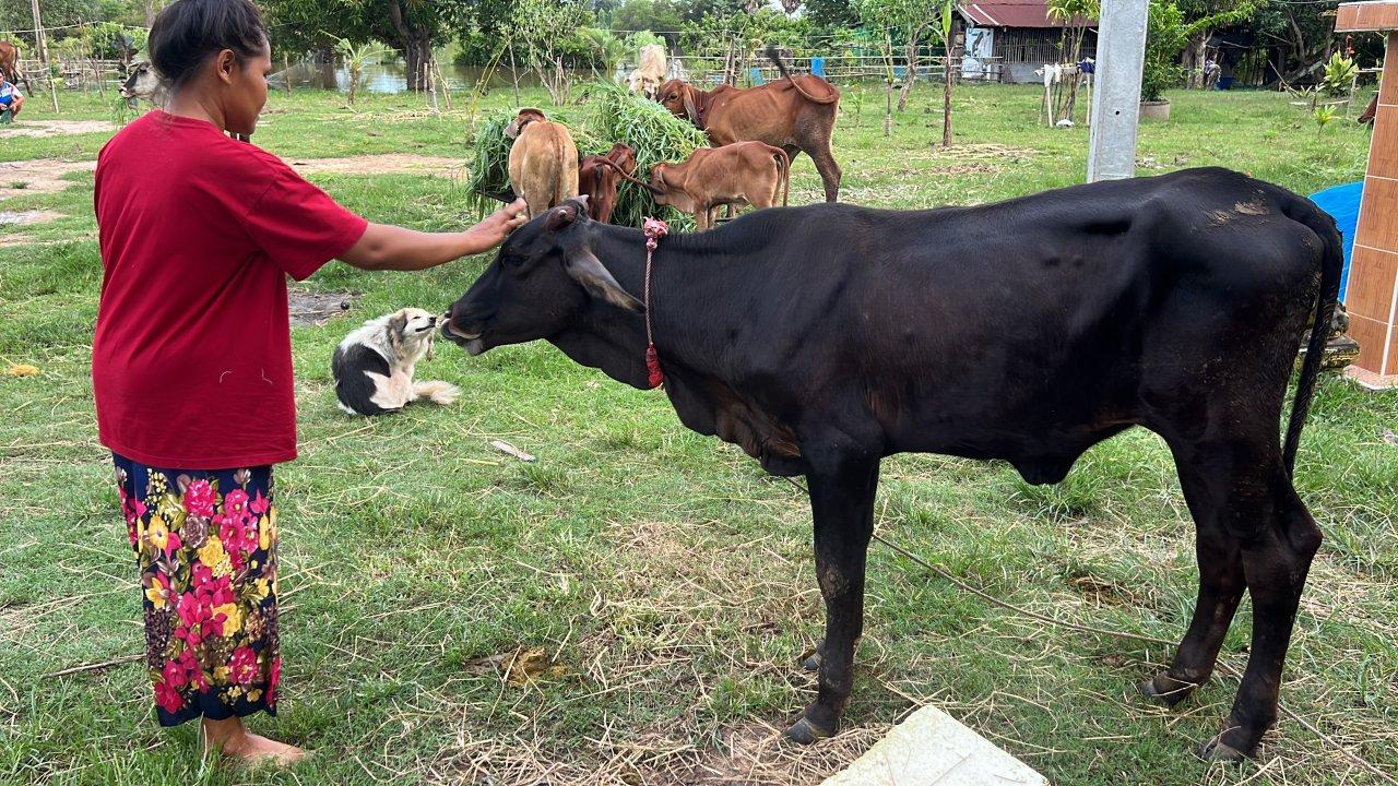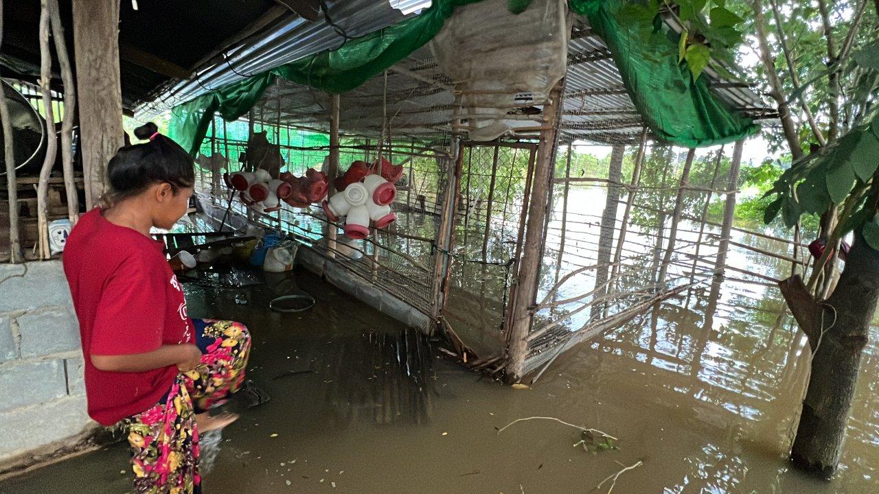 นางสาวทองคูน จอมคำสิงห์ ชาวบ้านนาวี กล่าวว่า ก่อนหน้านี้เมื่อประมาณวันที่ 7 ก.ย. 66 หลังจากน้ำยังเริ่มล้นตลิ่งก็ไหลเข้าท่วมไร่นา ก่อนจะค่อยๆ เพิ่มระดับสูงขึ้นจนตัดทางเข้าออกหมู่บ้าน จนต้องสัญจรผ่านทางเรือ ส่งผลให้ชาวบ้านที่เลี้ยงวัวรวมกว่า 200 ตัว เริ่มขาดแคลนอาหาร ซึ่งในส่วนครอบครัวของตนก็ต้องออกไปซื้อหญ้าในพื้นที่ อ.หนองพอก ใช้เงินวันละ 400-500 บาท ซื้อหญ้ามาเลี้ยงวัวที่มีอยู่ 14 ตัว ซึ่งก็มีวัวที่ป่วยโรคลัมปีสกินที่เริ่มมีอาการกำเริบ เพราะมียุงชุกชุม