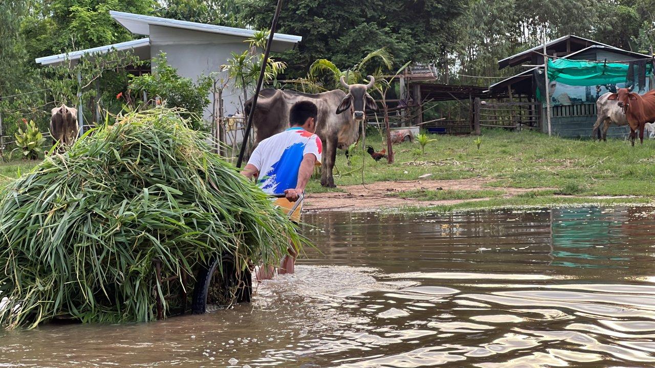 บ้านนาวี ต.ศรีวิลัย อ.เสลภูมิ จ.ร้อยเอ็ด เจอฝนตกน้ำท่วมนานนับสัปดาห์ ทำให้เกษตรกรผู้เลี้ยงโค เริ่มประสบปัญหาขาดแคลนอาหารสัตว์ ต้องออกไปซื้อหญ้าต่างอำเภอมาให้วัว เพราะทุ่งหญ้าน้ำท่วมหมด วอน "ธรรมนัส" ช่วยเหลือ เพราะไม่รู้จะแบกภาระค่าอาหารได้อีกกี่วัน