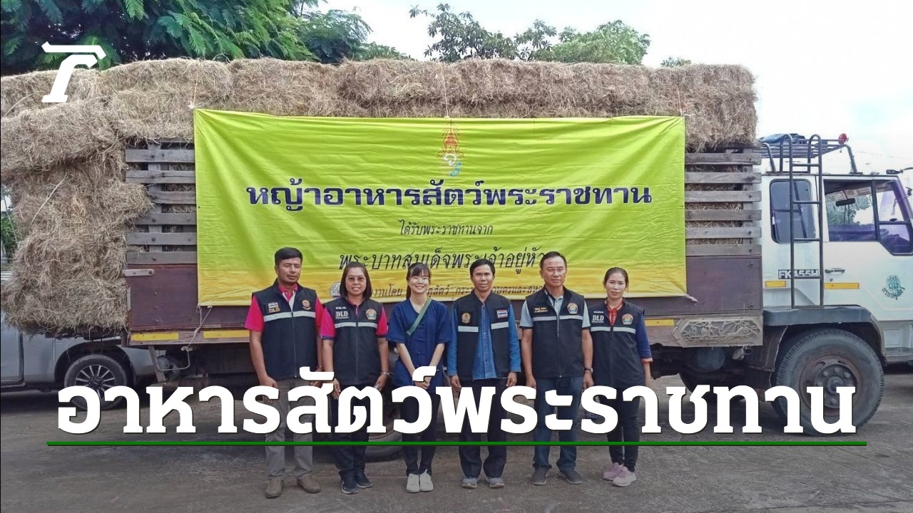 ปศุสัตว์จังหวัดร้อยเอ็ด รับมอบหญ้าอาหารสัตว์พระราชทานจากพระบาทสมเด็จพระเจ้าอยู่หัว เพื่อช่วยเหลือราษฎรที่ประสบปัญหาอุทกภัยลำน้ำยังเอ่อท่วม ทำให้วัวควายที่เลี้ยงไว้ขาดแคลนหญ้าในพื้นที่ อ.โพนทอง
