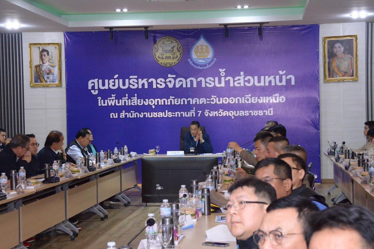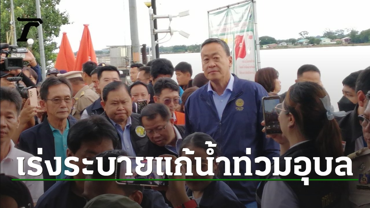 นายกฯ นำทีมตรวจน้ำท่วมอุบลราชธานี แนะคิดนอกกรอบหาทางเร่งระบาย อย่ากลัวแล้งตอนนี้ ด้าน รมช.ไชยา เผยโดยแนวโน้มน้ำยังทรงตัว ชลประทานวางเครื่องผลักดันน้ำในแม่น้ำมูล ที่ อ.พิบูลมังสาหาร เพื่อเร่งระบายลงแม่น้ำโขง พร้อมรับฟังความเดือดร้อนของชาวบ้าน
