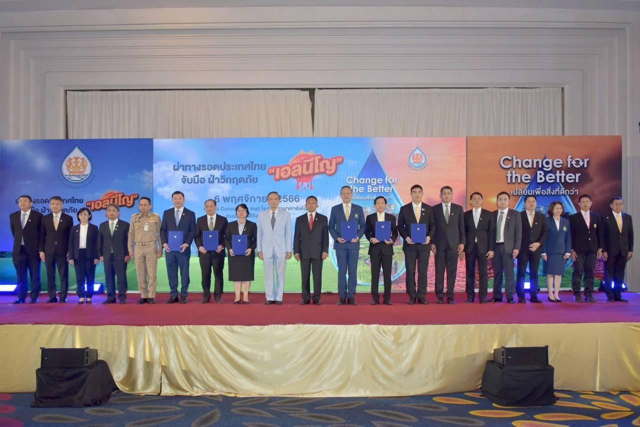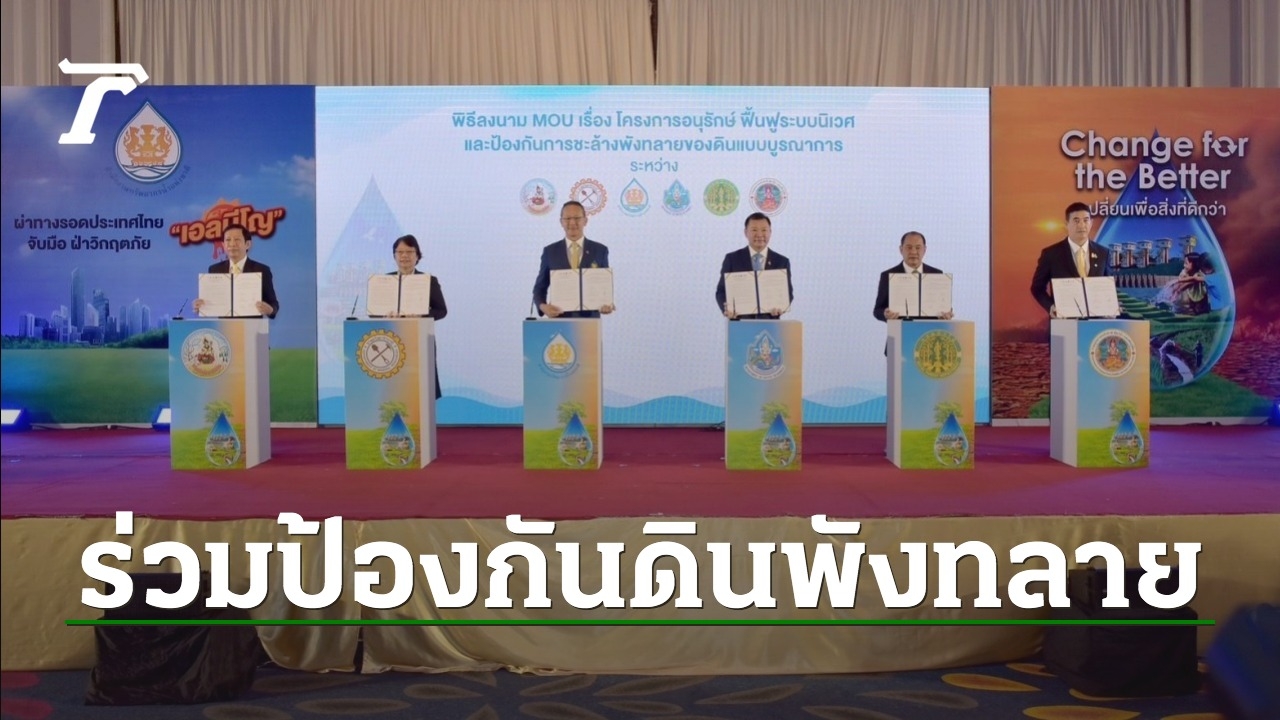 วานนี้ (6 พ.ย. 2566) ผู้สื่อข่าวรายงานว่า ที่โรงแรมรามาการ์เด้นส์ กทม. นายปราโมทย์ ยาใจ อธิบดีกรมพัฒนาที่ดิน ร่วมลงนามเอ็มโอยู กับ สำนักงานทรัพยากรน้ำแห่งชาติ (สทนช.) กรมอุทยานแห่งชาติ สัตว์ป่า และพันธุ์พืช กรมป่าไม้ กรมทรัพยากรธรณี และกรมทรัพยากรน้ำ ในเรื่อง "การอนุรักษ์ ฟื้นฟูระบบนิเวศ และป้องกันการชะล้างพังทลายของดินแบบบูรณาการ ภายใต้แผนแม่บทการบริหารจัดการทรัพยากรน้ำ 20 ปี"