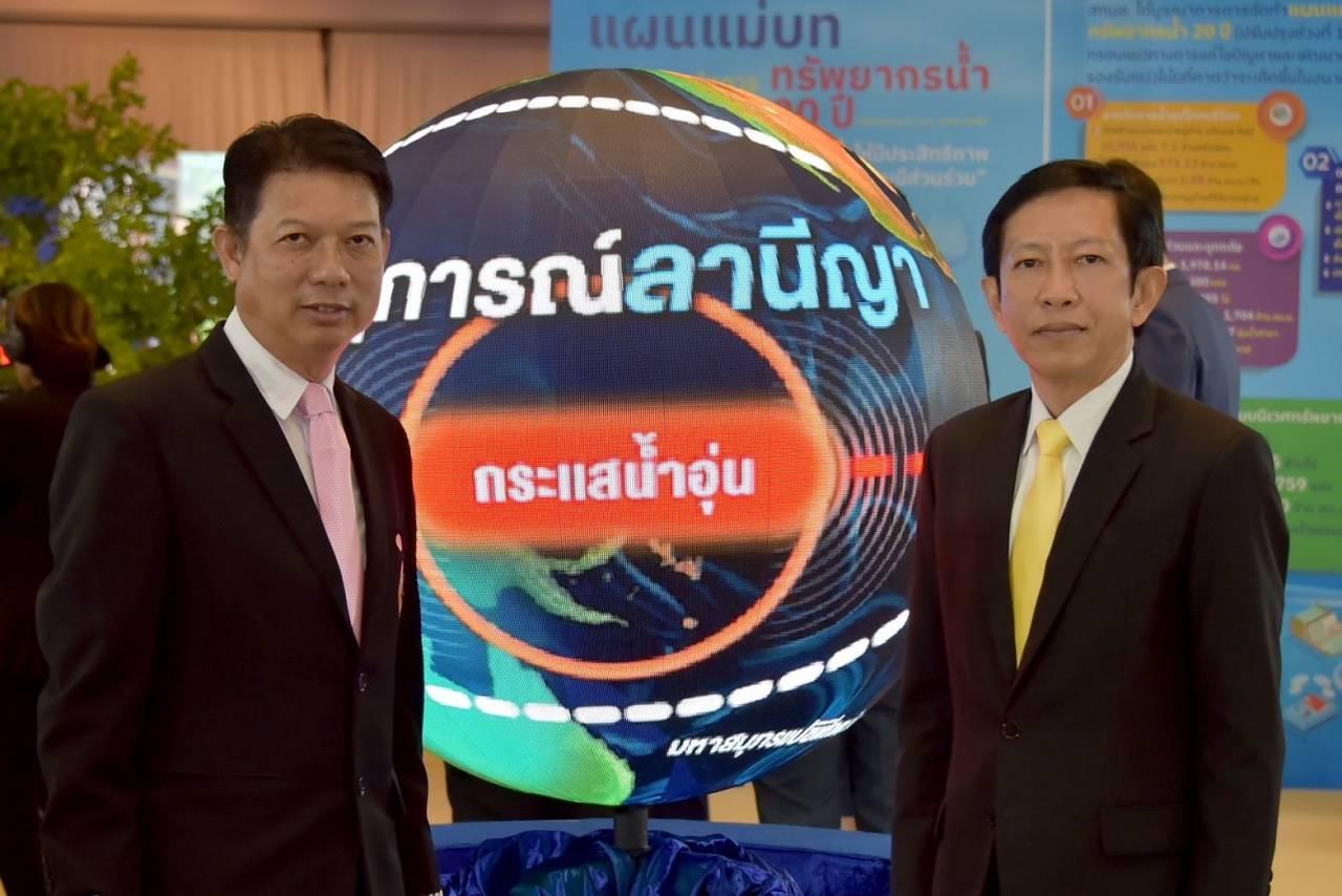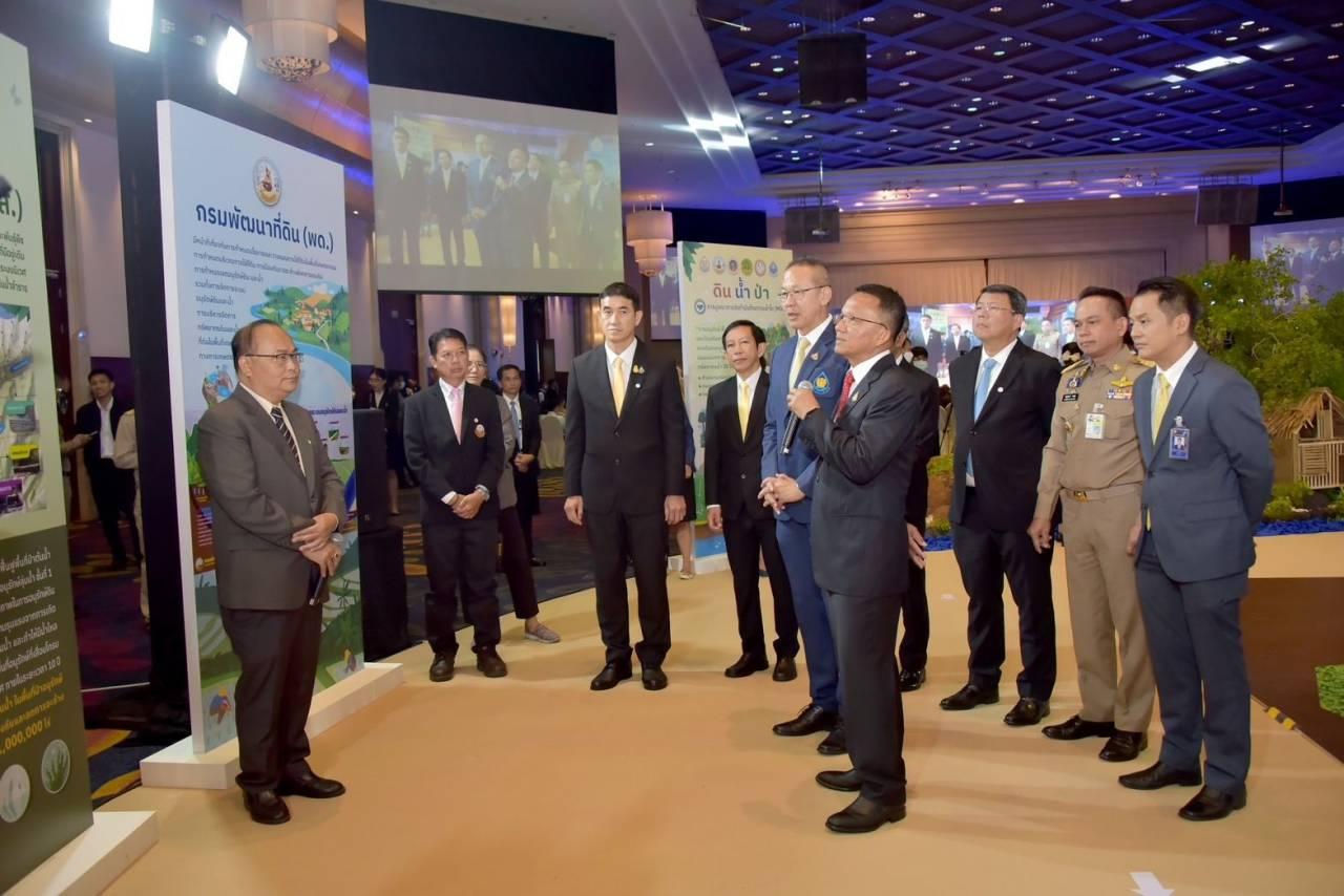 จากนั้น อธิบดีกรมพัฒนาที่ดิน ได้ร่วมเปิดงานโครงการบูรณาการสื่อสารแผนบริหารทรัพยากรน้ำลดเสี่ยงขาดแคลนน้ำจาก “เอลนีโญ” โดยมีนายสมศักดิ์ เทพสุทิน รองนายกรัฐมนตรี เป็นประธานในพิธี โดยนำเสนอผลงานผ่านนิทรรศการ "งานบริหารจัดการลุ่มน้ำด้วยระบบอนุรักษ์ดินและน้ำ" ที่ได้วางแผนและบริหารจัดการดินและน้ำ ในพื้นที่ลุ่มน้ำ อย่างเป็นระบบ ตั้งแต่พื้นที่ต้นน้ำ จัดทำขั้นบันไดดิน คันดินเบนน้ำ ปลูกหญ้าแฝกเพื่อป้องกันการชะล้างพังทลายของดินบนพื้นที่ลาดชัน พื้นที่กลางน้ำจัดทำบ่อดักตะกอนดิน ทางลำเลียงในไร่นา ก่อสร้างแหล่งน้ำพร้อมระบบสูบน้ำ กระจายน้ำพลังงานแสงอาทิตย์ และปลายน้ำปรับรูปแปลงนา ปรับปรุงบำรุงดิน พร้อมทำระบบคลองส่งน้ำ กระจายน้ำพลังงานแสงอาทิตย์ สามารถแก้ปัญหาทั้งระบบในพื้นที่ลุ่มน้ำ ทรัพยากรดินและน้ำได้รับการอนุรักษ์ฟื้นฟู เกษตรกรสามารถใช้ประโยชน์ที่ดินอย่างคุ้มค่า มีประสิทธิภาพและยั่งยืน.
