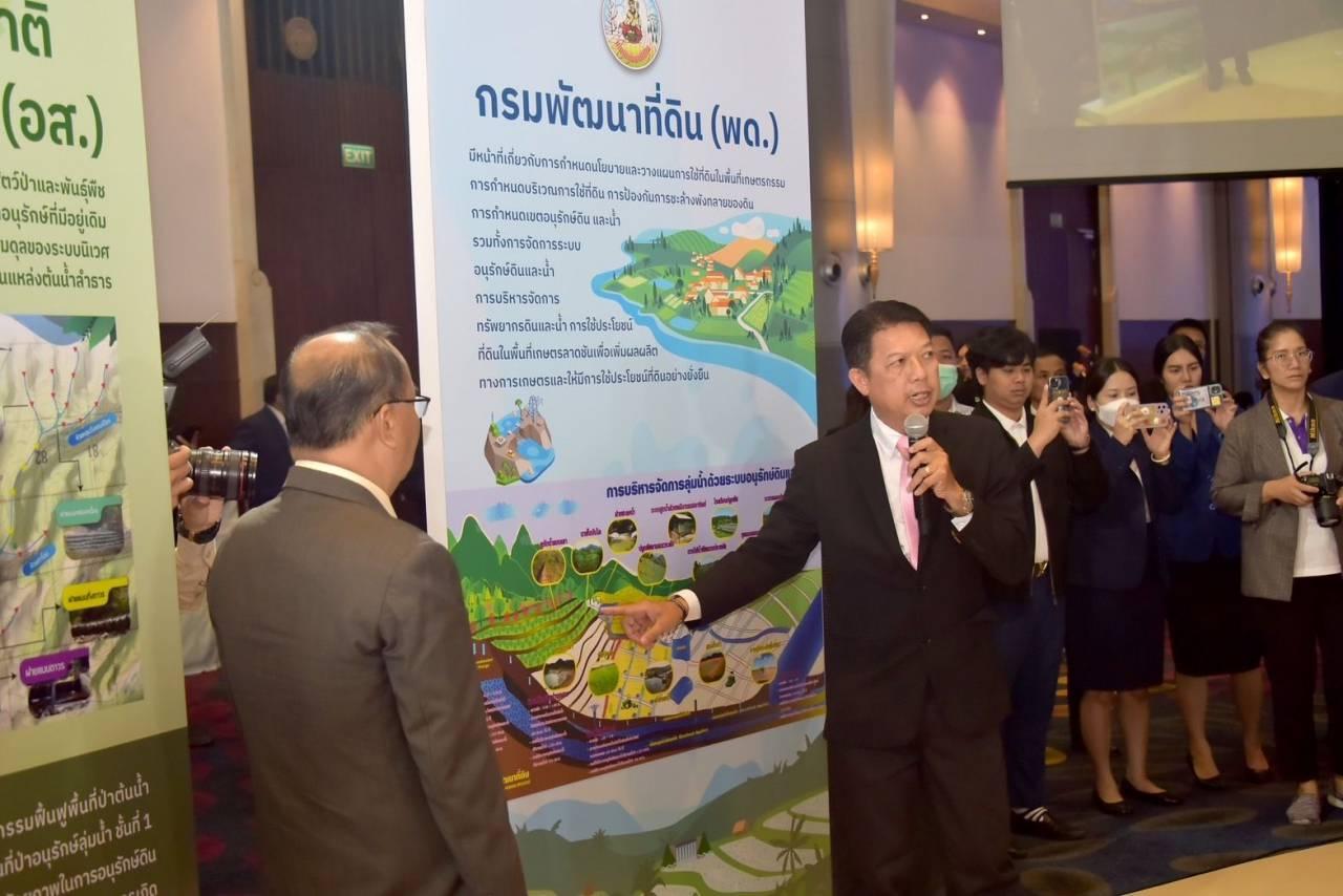 อธิบดีกรมพัฒนาที่ดิน กล่าวต่อว่า ในฐานะที่กรมพัฒนาที่ดินเป็นหน่วยงานที่มีองค์ความรู้ เทคโนโลยี นวัตกรรม และบุคลากรที่มีความรู้ความสามารถ ในการแก้ปัญหาความเสื่อมโทรมของทรัพยากรดินและน้ำ โดยเฉพาะพื้นที่ต้นน้ำที่มีปัญหาการชะล้างพังทลายของดินและดินถล่ม โดยมีแผนงานโครงการตามแผนแม่บทการบริหารจัดการทรัพยากรน้ำ 20 ปี ด้านที่ 4 การอนุรักษ์และฟื้นฟูระบบนิเวศทรัพยากรน้ำ แผนงานลดการชะล้างพังทลายของดิน 2.65 ล้านไร่