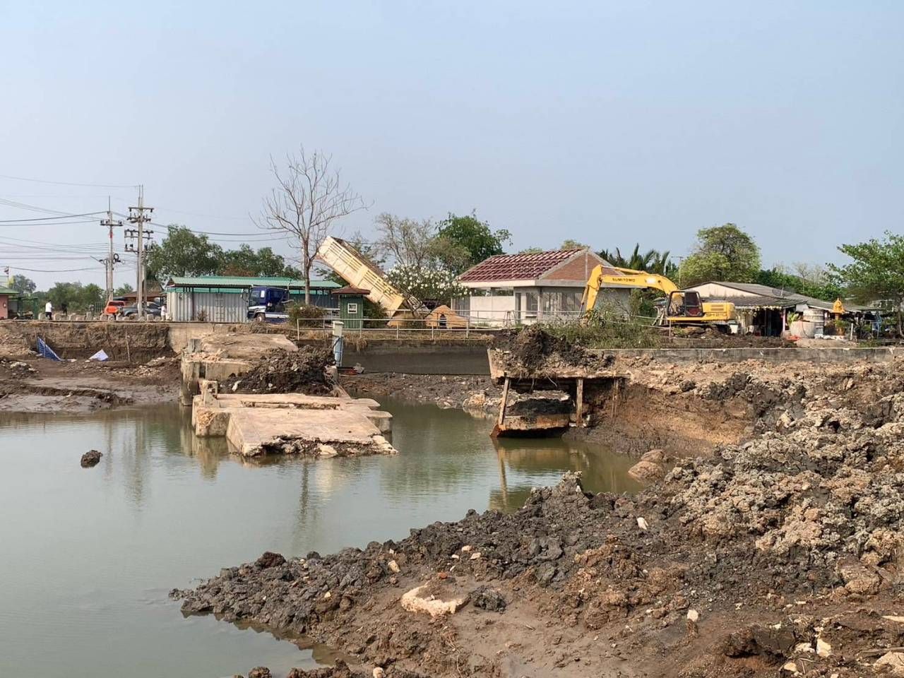 นายวรา กลัดเนียม หัวหน้าฝ่ายจัดสรรน้ำและปรับปรุงระบบชลประทาน โครงการส่งน้ำและบำรุงรักษาพระองค์ไชยานุชิต เปิดเผยว่า โครงการก่อสร้างประตุระบายน้ำท่าถั่วใหม่ ต้องใช้เวลาในการก่อสร้างถึง 2 ปี ซึ่งขณะเกิดเหตุน้ำทะเลได้หนุนสูง กัดเซาะทำนบที่สร้างขึ้นมาพัง น้ำเค็มจำนวนมากจึงไหลลงคลองประเวศบุรีรมย์ ซึ่งผู้รับเหมาและกรมชลประทานได้นำถุงบิ๊กแบ็ก และเหล็กชีตไพล์มาทำแนวเขื่อนใหม่ทั้งหมด แต่ปริมาณน้ำเค็มที่ไหลทะลักออกสู่คลองประเวศบุรีรมย์มีจำนวนมาก ที่ผ่านมา เวลาน้ำลงจะเปิดบานประตูน้ำ เพื่อให้น้ำเค็มไหลกลับมา เวลาน้ำขึ้นก็จะใช้เครื่องสูบน้ำขนาดใหญ่สูบออก แต่ทางกรมชลไม่กล้าจะสูบน้ำจนแห้งขอดคลอง เนื่องจากกลัวปัญหาดินจะสไลด์ อุ้มน้ำไม่อยู่ จนตลิ่งของชาวบ้านพัง