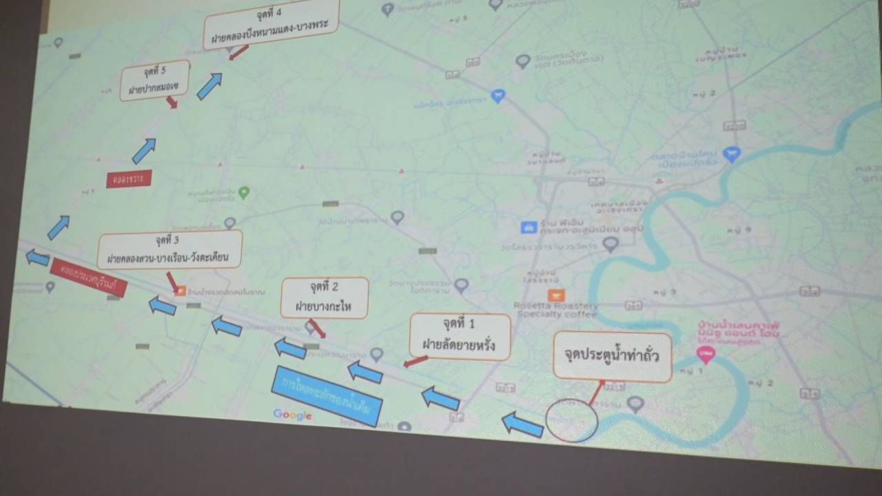 จากกรณีเมื่อวันที่ 9 เมษายน 2567 เวลา 21.30 น. ทำนบดินที่ใช้ในการก่อสร้างประตูระบายน้ำท่าถั่ว ใกล้ปากคลองประเวศบุรีรมย์ ม.3 ต.บางกรูด อ.บ้านโพธิ์ จ.ฉะเชิงเทรา ของกรมชลประทาน เกิดรอยรั่วและพังทลายลง ทำให้มวลน้ำในแม่น้ำบางปะกง ซึ่งมีค่าความเค็มในช่วง 20.83 – 26.40 กรัม/ลิตร ไหลทะลักเข้าสู่คลองประเวศบุรีรมย์อย่างรวดเร็ว ส่งผลให้ฝายที่กักเก็บน้ำไว้บริเวณปากคลองลัดยายหรั่ง มีน้ำเค็มท่วมสูงและพังทลายลงในวันที่ 10 เมษายน 2567 ทำให้มวลน้ำเค็มจำนวนมากทะลักลงสู่คลองลัดยายหรั่ง ออกสู่คลองหนามแดง-บางพระ คลองพระองค์ไชยานุชิต กระจายตัวไปยังพื้นที่ตำบลบางกะไห ตำบลบางเตย ตำบลโสธร ตำบลบางพระ ตำบลเกาะไร่ ตำบลคลองเปรง และตำบลคลองประเวศ