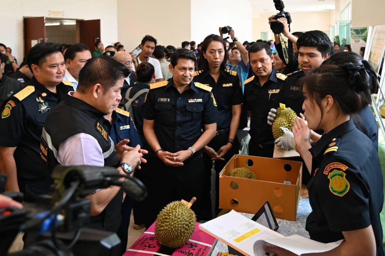 รมว.กระทรวงเกษตรและสหกรณ์ กล่าวต่อว่า อีกทั้งได้สั่งการให้ กรมวิชาการเกษตร บริหารจัดการตรวจสอบคุณภาพ และรับรองสุขอนามัยพืช (Phytosanitary Certificate) ทุเรียนส่งออกไปจีน เพื่ออำนวยความสะดวกให้กับเกษตรกร ผู้ประกอบการโรงคัดบรรจุ ผู้ส่งออก รวมถึงติดตามสถานการณ์การส่งออกรายวัน ได้แก่ การจัดทำข้อมูลสถิติการส่งออกแต่ละรูปแบบการขนส่งรายด่านรายภาค ใช้ระบบใบรับรองสุขอนามัยพืชแบบอิเล็กทรอนิกส์ (ePhyto) รับแจ้งงานตลอด 24 ชั่วโมง ให้เพิ่มจำนวนนายตรวจพืช โดยระดมกำลังจากด่านตรวจพืชทั่วประเทศ จำนวนรวม 60 คน ซึ่งมากกว่าทุกปีที่ผ่านมา เพื่อรองรับการส่งออกที่เพิ่มสูงขึ้น ให้บริการออกตรวจทุกวันไม่เว้นวันหยุด ย้ำอำนวยความสะดวกผู้ส่งออก 7 วัน/สัปดาห์