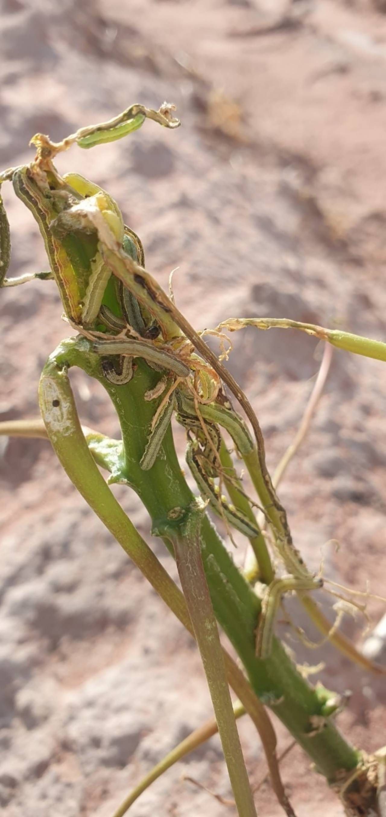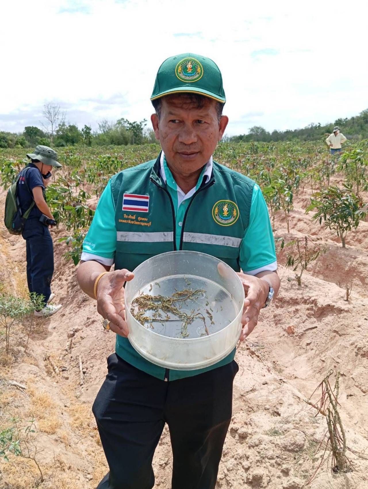 นายพีรพันธ์ คอทอง อธิบดีกรมส่งเสริมการเกษตร กล่าวว่า ตามที่กรมส่งเสริมการเกษตรได้รับรายงานจากเกษตรจังหวัดกาญจนบุรีว่า พบการระบาดของหนอนกัดกินต้นมันสำปะหลัง ในพื้นที่อำเภอพนมทวน อำเภอห้วยกระเจา และอำเภอบ่อพลอย รวมพื้นที่ที่ได้แจ้งการระบาด จำนวนกว่า 7 พันไร่ เกษตรกรกว่า 600 ราย กรมส่งเสริมการเกษตรจึงได้มอบหมายให้ นางดวงสมร พฤฑฒิกุล ผู้อำนวยการกองส่งเสริมการอารักขาพืชและจัดการดินปุ๋ย กรมส่งเสริมการเกษตร เร่งลงพื้นที่ร่วมกับนายวีระศักดิ์ สุขทอง เกษตรจังหวัดกาญจนบุรี และเจ้าหน้าที่ผู้เกี่ยวข้อง ประกอบด้วย นางสาวมาลินี หนูงาม นักวิชาการส่งเสริมการเกษตรชำนาญการ รักษาการในตำแหน่งผู้อำนวยการศูนย์ส่งเสริมเทคโนโลยีการเกษตรด้านอารักขาพืช จังหวัดสุพรรณบุรี นักกีฏวิทยาจากกรมวิชาการเกษตร เกษตรอำเภอพนมทวน และเจ้าหน้าที่ที่เกี่ยวข้อง เพื่อสำรวจแมลงศัตรูพืชดังกล่าว