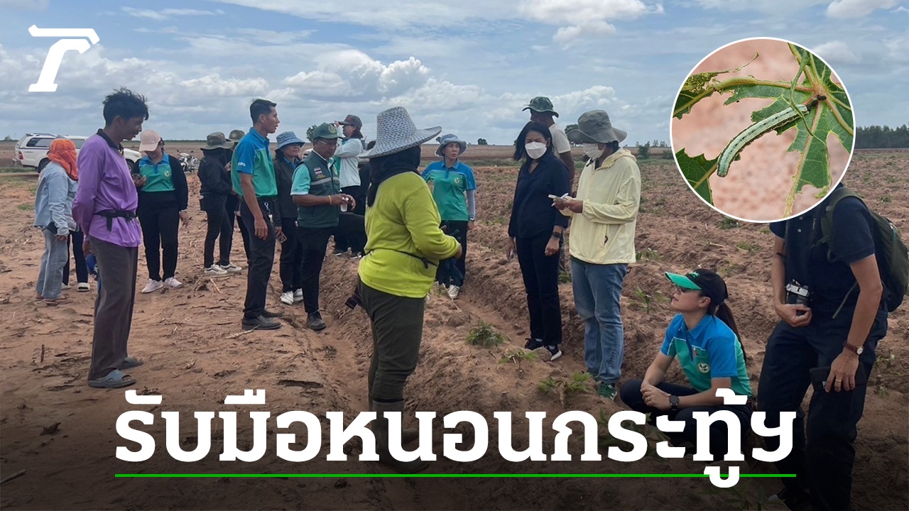 กรมส่งเสริมการเกษตร สั่งเข้มเจ้าหน้าที่เฝ้าระวังการระบาด "หนอนกระทู้หอม" ในมันสำปะหลังที่ อ.บ่อพลอย จ.กาญจนบุรี หลังโดนไปแล้ว 7 พันไร่ เกษตรกรเดือดร้อนกว่า 600 ราย แนะเก็บทำลายพืชที่เสียหาย พร้อมพ่นสารเคมีกำจัด ส่วนแปลงที่ยังไม่พบ ให้ทำตาม 7 ข้อแนะนำ