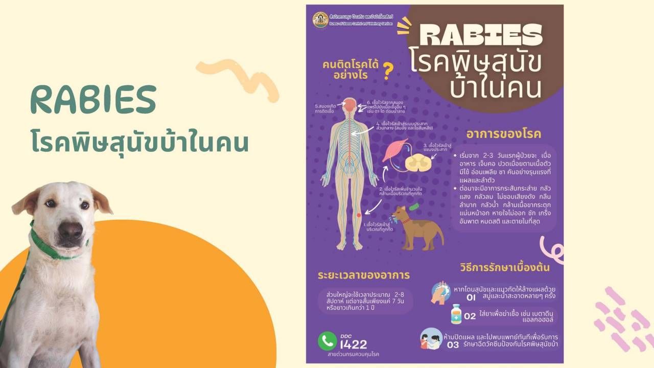 อธิบดีกรมปศุสัตว์ เผยสถานการณ์โรคพิษสุนัขบ้าขณะนี้พบการติดเชื้อ 170 เคส ใน 7 จังหวัด รวม 10 จุด ได้แก่ จังหวัดจันทบุรี ชลบุรี อุบลราชธานี ศรีสะเกษ มหาสารคาม ตาก และสุพรรณบุรี และมีพื้นที่เฝ้าระวังอีก 160 จุด แนะนำสัตว์เลี้ยงมาฉีดวัคซีนป้องกัน