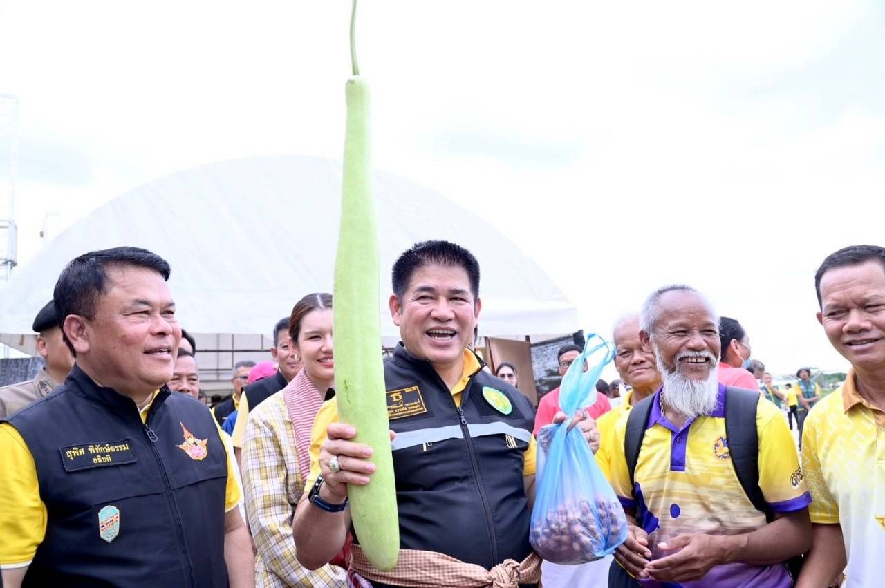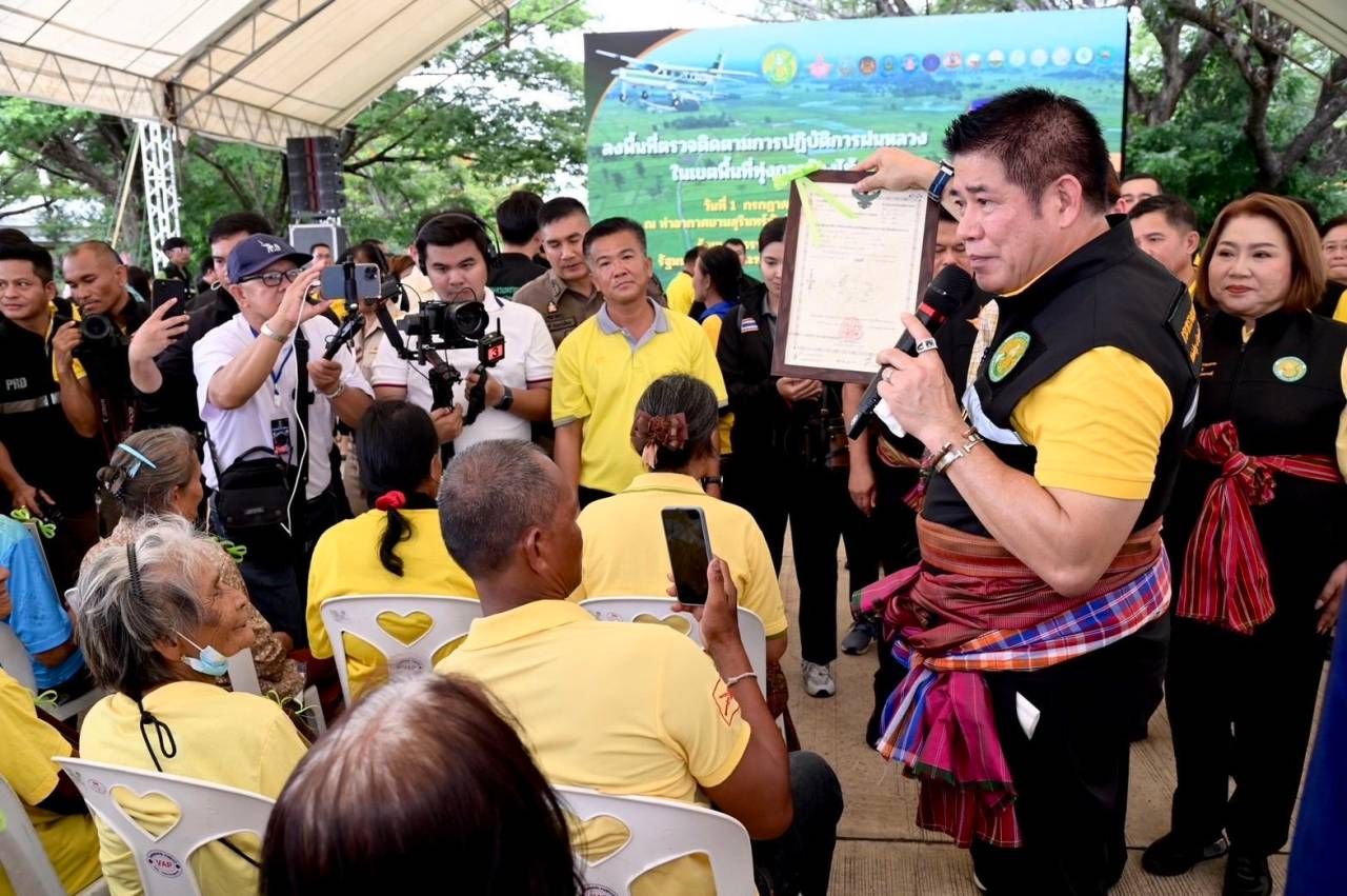 จากนั้นได้มอบเมล็ดข้าวพันธุ์ดีให้แก่ผู้แทนเกษตรกรสำหรับนำไปแจกจ่ายให้แก่เกษตรกรที่ยังไม่สามารถหว่านข้าวได้ในช่วงที่ผ่านมา เนื่องจากพื้นที่นั้นมีสภาพแห้งแล้งเกินไป รวมถึงเกษตรกรที่ประสบปัญหาภัยแล้งจนได้รับความเสียหายจากการหว่านข้าวในรอบแรก และมอบโฉนดที่ดินเพื่อการเกษตรให้แก่ผู้แทนเกษตรกร จำนวน 100 ราย เพื่อนำไปใช้ประโยชน์เฉพาะการเกษตรในการพัฒนาต่อยอดให้เกิดการสร้างอาชีพ สร้างรายได้ และความมั่นคงในชีวิต