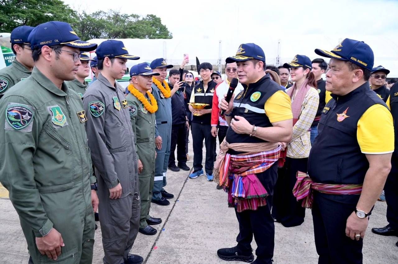อธิบดีกรมฝนหลวงและการบินเกษตร กล่าวอีกว่า เมื่อปี 2566 ที่ผ่านมา ประเทศไทยได้รับผลกระทบจากภาวะเอลนีโญ ทำให้ส่งผลกระทบในเรื่องน้ำฝนธรรมชาติอย่างหลีกเลี่ยงไม่ได้ แต่ในขณะนี้สถานการณ์ต่างๆ เริ่มมีทิศทางไปในทางที่ดีระดับหนึ่งเพราะภาวะเอลนีโญในตอนนี้ได้อ่อนกำลังลงแล้ว ซึ่งเท่ากับว่าสภาพอากาศในตอนนี้จะดีขึ้น ทำให้มีโอกาสการปฏิบัติการฝนหลวงแล้วประสบผลสำเร็จมีมากขึ้นตามลำดับ เพราะการทำงานของเรานั้นต้องอาศัยความชื้นสัมพัทธ์ทางอากาศมากกว่า 60 เปอร์เซ็นต์ ถ้าหากองค์ประกอบทุกอย่างพร้อมเราจะขึ้นบินทำฝนทันทีเพื่อให้พี่น้องเกษตรกรไม่ต้องรอนาน เพื่อช่วยเหลือพื้นที่การเกษตรในพื้นที่ทุ่งกุลาร้องไห้และพื้นที่อื่นๆ ให้มีน้ำทำการเกษตรอย่างเพียงพอ และผ่านพ้นระยะฝนทิ้งช่วงให้จงได้