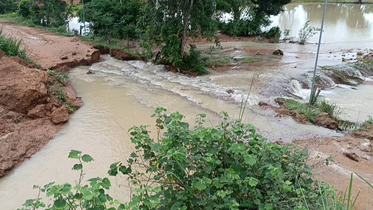 ขณะเดียวกัน น.ส.นันทิดา ภูมาศ นายกองค์การบริหารส่วนตำบลบ้านแก้ง อ.แก้งคร้อ จ.ชัยภูมิ ได้ไลฟ์สดในเฟซบุ๊กส่วนตัว เพื่อแจ้งเตือนชาวบ้านให้เฝ้าระวังสถานการณ์อย่างต่อเนื่อง หลังจากที่มีมวลน้ำจากเทือกเขาผาแดง ไหลมาบรรจบกันที่ฝายใหม่ในหมู่บ้านโนนส้มกบ ต.บ้านแก้ง เป็นจำนวนมาก ทำให้ฝายเกิดรับน้ำไม่ไหวและแตกทะลัก มวลน้ำได้ไหลเข้าท่วมถนนหลายสาย รวมถึงพื้นที่การเกษตรนาข้าวไร่อ้อย และพืชผลการเกษตรอื่นๆ ได้รับความเสียแล้วกว่า 1,000 ไร่