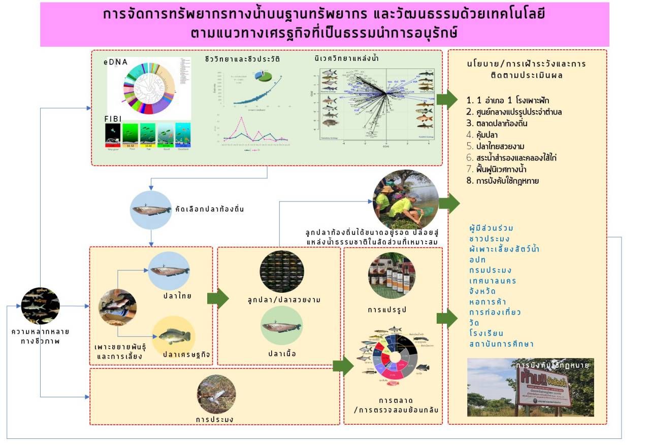 ในส่วนของมหาวิทยาลัยแม่โจ้ ได้มีโครงการศึกษาความคุ้มค่าทางเศรษฐกิจ วิถีชีวิต ความมั่นคงทางอาหารและการมีส่วนร่วมของชุมชนในการพัฒนาระบบนิเวศทางน้ำลุ่มน้ำยม เพื่อให้ประชาชนในพื้นที่ได้มีส่วนร่วมในการเรียนรู้ หวงแหน ใช้ประโยชน์ สร้างคุณค่าปลาไทยในท้องถิ่น โดยมีเป้าหมายว่าจะขยายผลโครงการให้ครอบคลุมทุกลุ่มน้ำในประเทศไทย เพราะเมื่อปลาไทยเจ้าถิ่นมีจำนวนมากพอ ก็เป็นเหมือนด่านหน้าที่จะป้องกันสกัดกั้นไม่ให้ปลาต่างถิ่นรุกล้ำเข้ามาจนเกิดปัญหาเหมือนเช่นปลาหมอคางดำในตอนนี้.