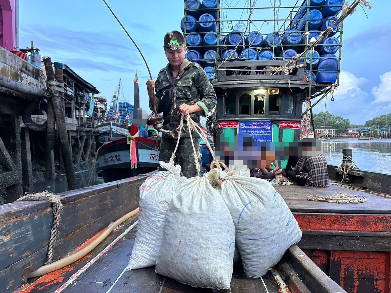 เจ้าหน้าที่ประมง ชุด ฉก.พญานาคราช ด่านตรวจประมงระนอง และฝ่ายปกครอง จับเรือหางสัญชาติเมียนมาลอบขนสินค้าประมงเถื่อนเข้าประเทศไทย ในพื้นที่ อ.เมือง จ.ระนอง ยึดของกลางหอยลาย 430 กระสอบ หนักรวมกว่า 1.9 ตัน ก่อนดำเนินการตามกฎหมายต่อไป
