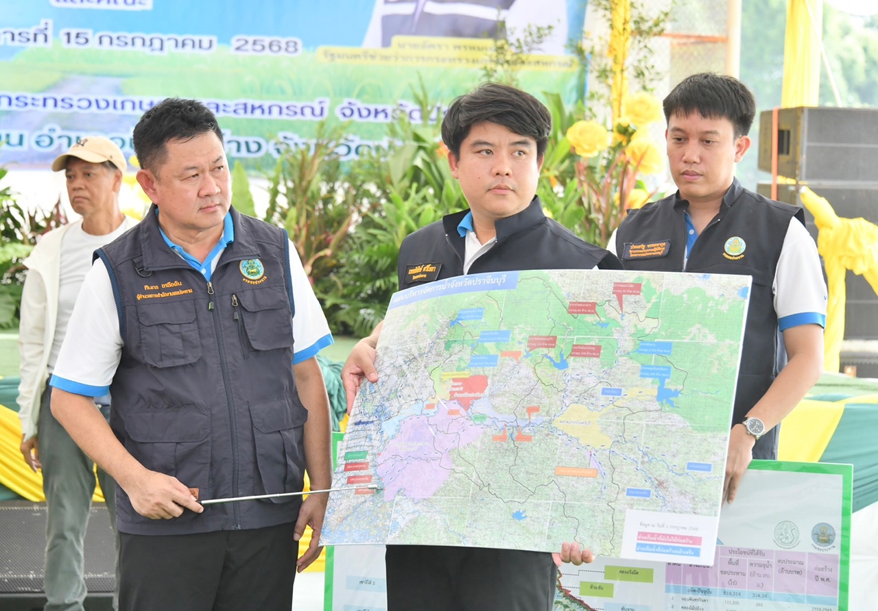 วันที่ 15 กรกฎาคม 2568 ที่วัดบางแตน ตำบลบางแตน อำเภอบ้านสร้าง จังหวัดปราจีนบุรี นายอรรถกร ศิริลัทธยากร รัฐมนตรีว่าการกระทรวงเกษตรและสหกรณ์ นายอัครา พรหมเผ่า รัฐมนตรีช่วยว่าการกระทรวงเกษตรและสหกรณ์ และคณะ ลงพื้นที่จังหวัดปราจีนบุรี ติดตามการดำเนินงานตามนโยบายสำคัญของกระทรวงเกษตรและสหกรณ์ พร้อมพบปะเกษตรกร รับฟังปัญหา-ข้อเสนอแนะด้านต่างๆ โดยมี นายวิทยา แก้วมี รองอธิบดีกรมชลประทาน พร้อมด้วย นายทินกร เหลือล้น ผู้อำนวยการสำนักงานชลประทานที่ 9 ตลอดจนผู้เกี่ยวข้อง ร่วมลงพื้นที่และบรรยายสรุปด้านการบริหารจัดการน้ำ