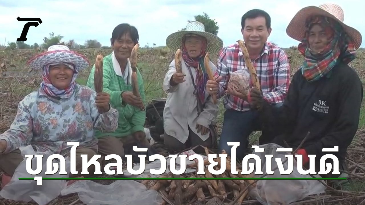 ชาวบ้านที่ ต.บัลลังก์ อ.โนนไทย จ.นครราชสีมา ใช้เวลาว่างรวมกลุ่มกันออกมาขุดไหลบัว ตามแหล่งน้ำแห้งไปขาย สร้างรายได้เสริมในช่วงแล้งฝน ไม่มีน้ำทำการเกษตร โดยแต่ละวันขุดได้ 40-50 กก. ทำให้พอมีรายได้เลี้ยงครอบครัววันละ 400-500 บาท