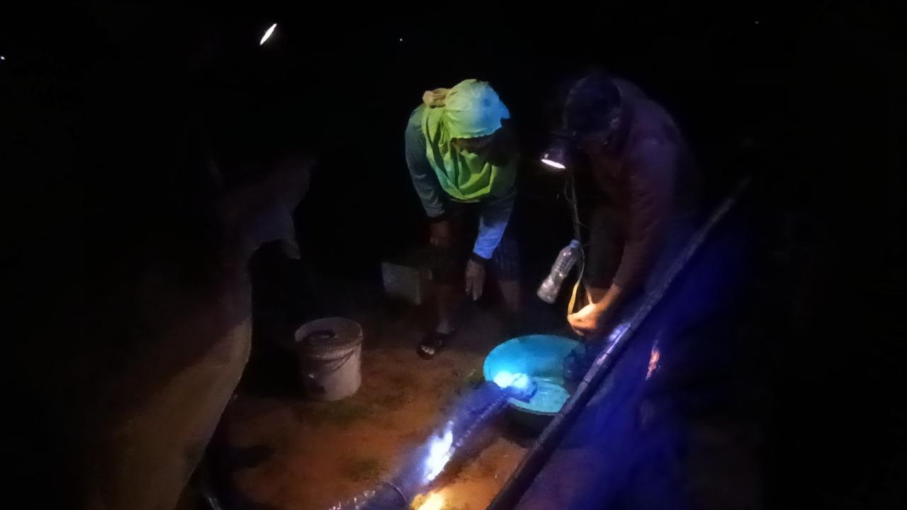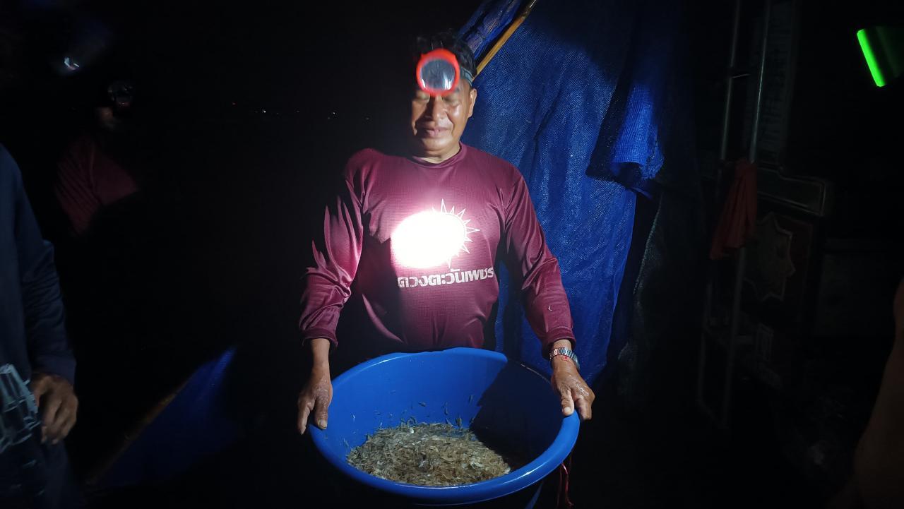 การจับกุ้งฝอยแต่ละรอบก็จะใช้เวลาแตกต่างกันไป แล้วแต่ความชำนาญ และพละกำลังของคนที่เดินดันอุปกรณ์ บางคนที่ชำนาญมากๆก็จะเดินได้นานนับชั่วโมง ขึ้นฝั่งครั้งหนึ่งก็จะได้กุ้งฝอยมา 1-2 กิโลกรัม นิยมหาไสกุ้งกันในช่วงกลางคืน เพราะเป็นช่วงที่กุ้งออกมาหาอาหารมากที่สุด แต่ละวันก็จะได้กุ้งคนละ 5-6 กิโลกรัม บางคนชำนาญมากก็จะได้กุ้งมากกว่า 10 กิโลกรัมต่อวันเลยทีเดียว หากใครได้มากก็จะนำไปจำหน่ายในชุมชน ราคากิโลกรัมละ 120-130 บาท สร้างรายได้เสริมให้กับครอบครัวเป็นอย่างดี