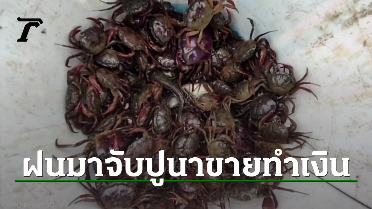 ชาวนาพะเยาเฮ พลิกวิกฤติฝนตกทุกวันเป็นโอกาส ออกจับปูนาที่มีชุกชุมตามท้องนาไปขาย โดยราคาปูเล็กขาย กก.ละ 25 บาท ขนาดใหญ่ตัวผู้-ตัวเมีย กก.ละ 30 บาท แต่ละวันจับได้ 5-10 กก.สร้างรายได้งาม