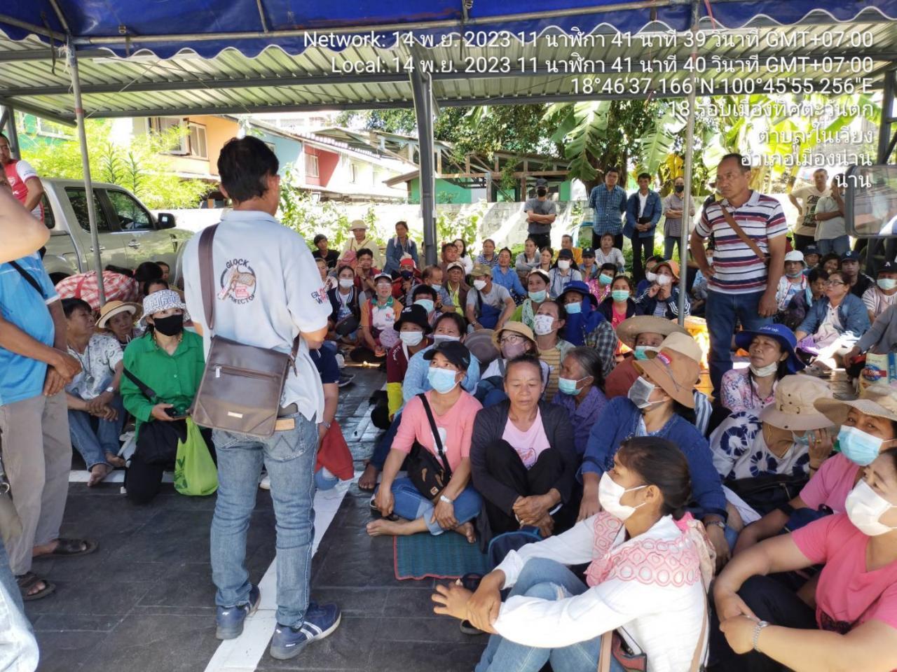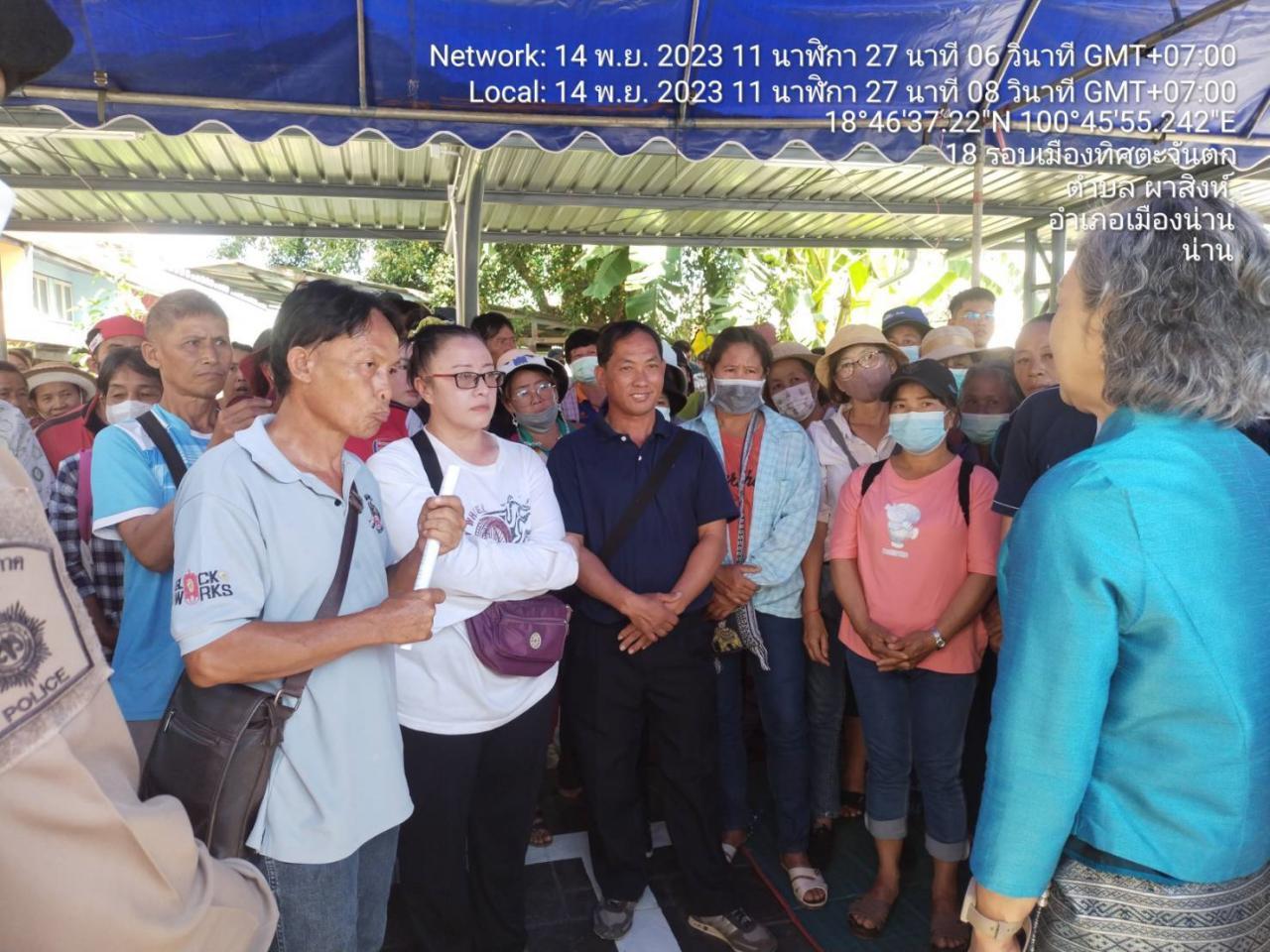 เมื่อวันที่ 14 พฤศจิกายน 2566 ตั้งแต่ช่วงเช้าจนถึง 12.00 น. กลุ่มเกษตรกรผู้ปลูกข้าวโพดจังหวัดน่าน โดยมี นายรัตน์ ครุทนา ตัวแทนกลุ่มเกษตรกรผู้ปลูกข้าวโพด นายเล่าโอง ภัทระเคหา และนางอิศรานันท์ กันทา รวมตัวชุมนุมที่ด้านหน้าสำนักงานพาณิชย์จังหวัดน่าน เพื่อติดตามการช่วยเหลือเกษตรกรผู้ปลูกข้าวโพดเลี้ยงสัตว์ ปีการผลิต 2566/67 เนื่องจากราคาข้าวโพดตกต่ำ โดยมีประเด็นที่เสนอขอราคารับซื้อข้าวโพดเลี้ยงสัตว์ (ชนิดเมล็ด) ความชื้น 30% ราคา 8 บาทต่อกิโลกรัม และความชื้น 14% กิโลกรัมละ 11.50-12.00 บาท