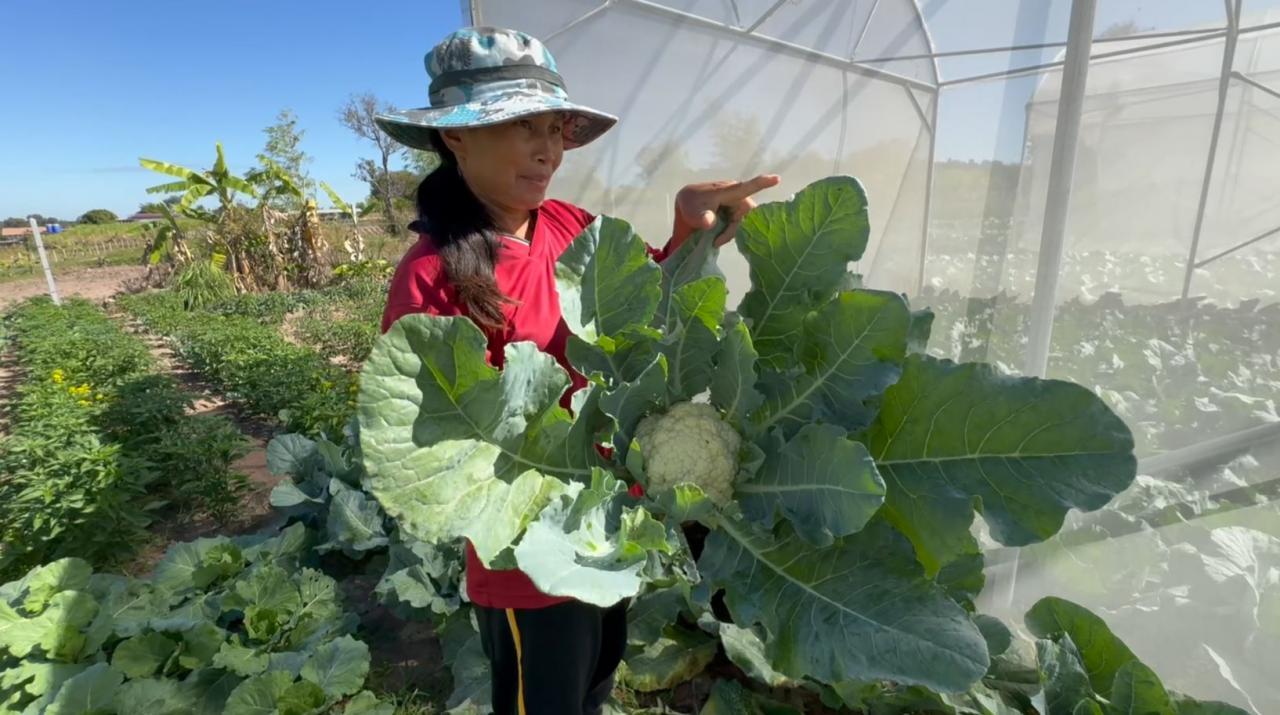 ก็ให้มีการปลูกผักอินทรีย์ มีการกางมุ้งให้ผักกันแมลง น้ำ กลุ่มแปลงใหญ่เราก็ไม่ใช้น้ำจากคลอง หรือลำห้วยเพราะก็สารเคมีที่ลงไปในน้ำ เราได้ทำการเจาะบ่อน้ำบาดาลไว้ใช้ในโครงการ เราก็ร่วมกลุ่มกันปลูกผักทำให้เกิดประโยชน์ ลดรายจ่าย เพิ่มรายได้ ทำให้เรามีสินค้าส่งได้ในจำนวนมากถ้ามีการสั่งซื้อมา