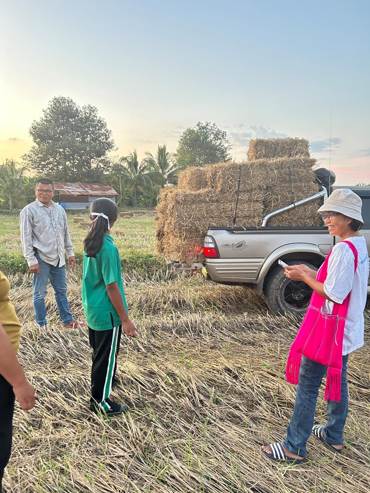 น้องขวัญข้าว กล่าวว่า ตามทุ่งนาเห็นเศษฟางข้าวเหลืออยู่จำนวนมาก เกษตรกรหลายรายมักจะเผาทิ้ง ตนรู้สึกเสียดายจึงชวนพ่อแม่ไปขอซื้อจากเกษตรกร เพื่อนำมาอัดเป็นฟางก้อนขาย โดยขอซื้อเกษตรกรในราคาไร่ละ 50 บาท บางแปลงก็ไม่คิดเงินยกให้ฟรีเพื่อจะได้ไม่ต้องเผา ซึ่งฟางที่ตนและครอบครัวนำมาอัดก้อนขายในช่วงใกล้เทศกาลปีใหม่ จะขายราคาก้อนละ 35 บาท จะมีออเดอร์สั่งเข้ามาในทุกวัน ขายได้ไม่ต่ำกว่าวันละ 100 ก้อน ซึ่งตนและครอบครับจะขายผ่านสื่อออนไลน์ ผู้ที่สนใจสั่งซื้อก็จะเข้ามารับถึงที่ หากใครสนใจใดสั่งซื้อเป็นจำนวนมาก ทางครอบครัวก็จะนำไปส่งถึงที่เช่นกัน ทำให้มีรายได้เสริมเป็นอย่างดีในช่วงใกล้ปีใหม่นี้.
